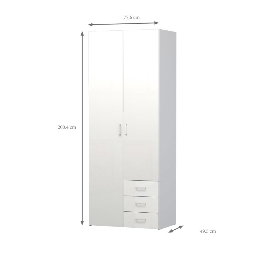 Spell kledingkast 2 deuren en 3 lades wit en wit hoogglans.