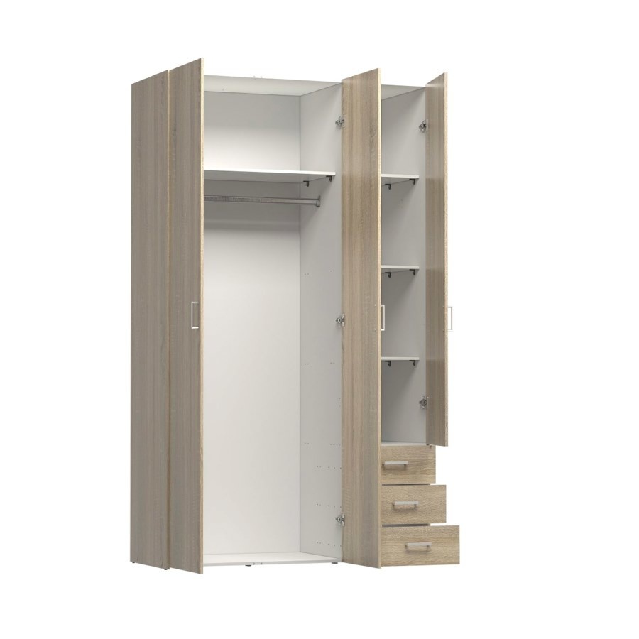 Spell kledingkast 3 deuren en 3 lades eiken decor.