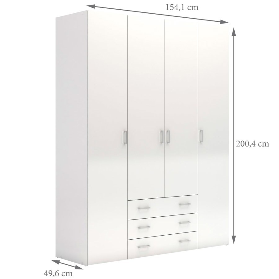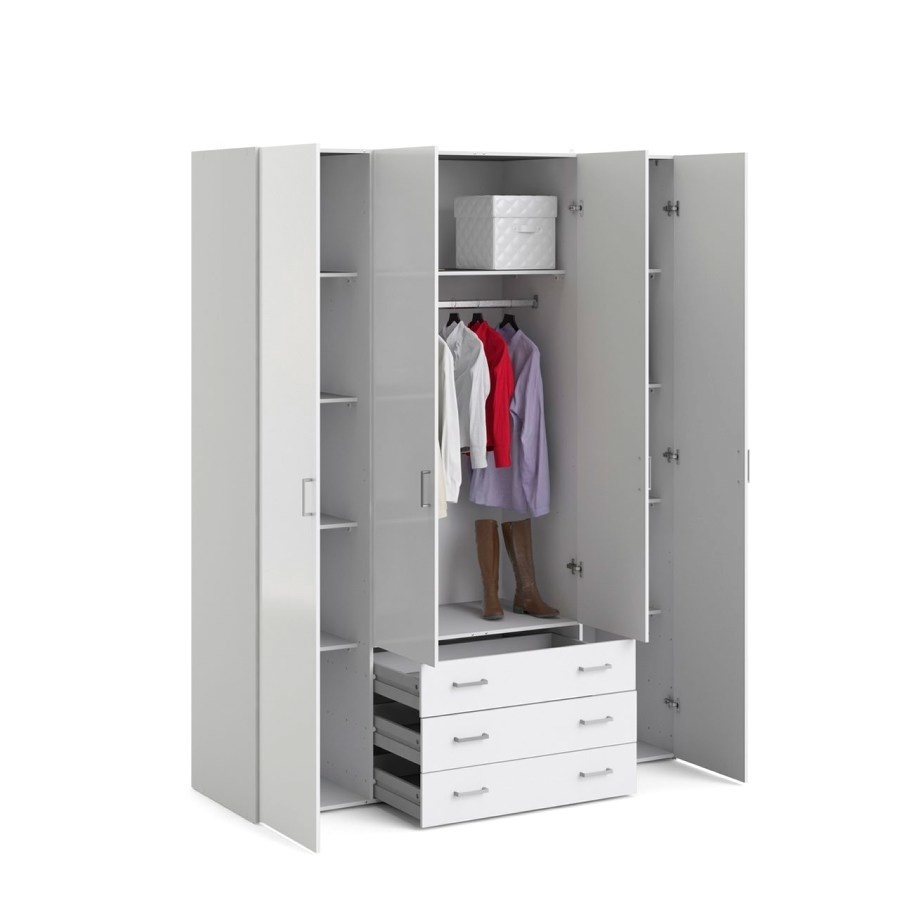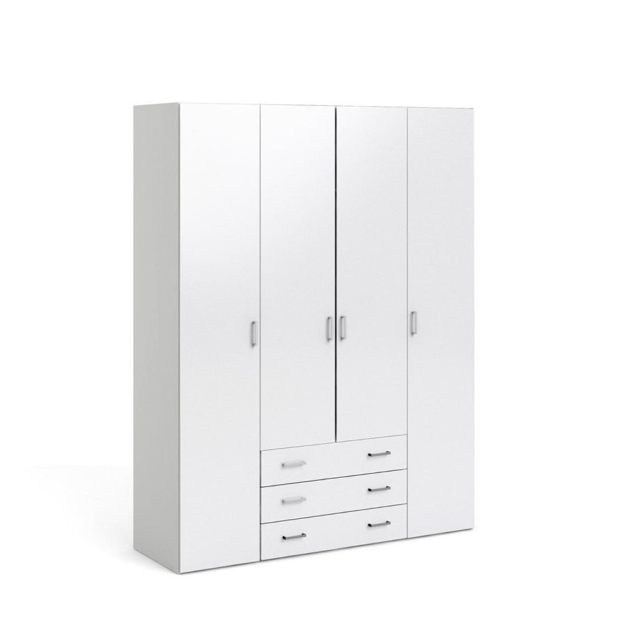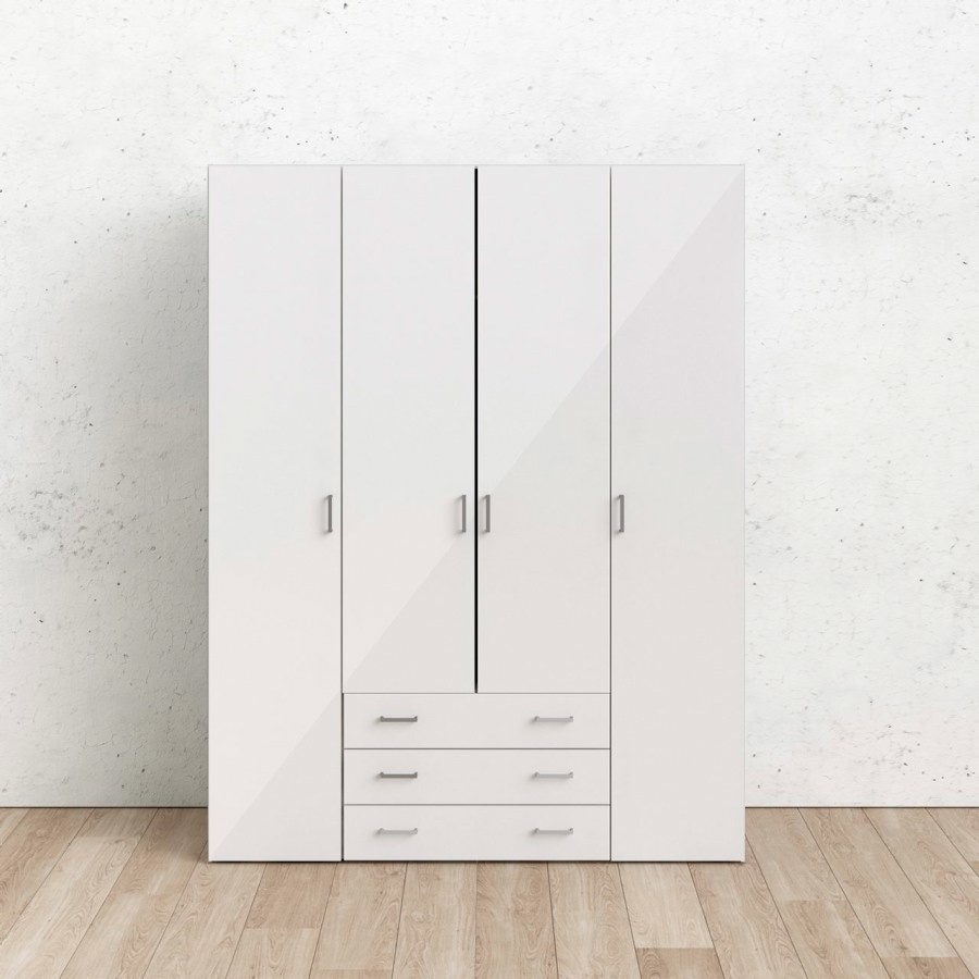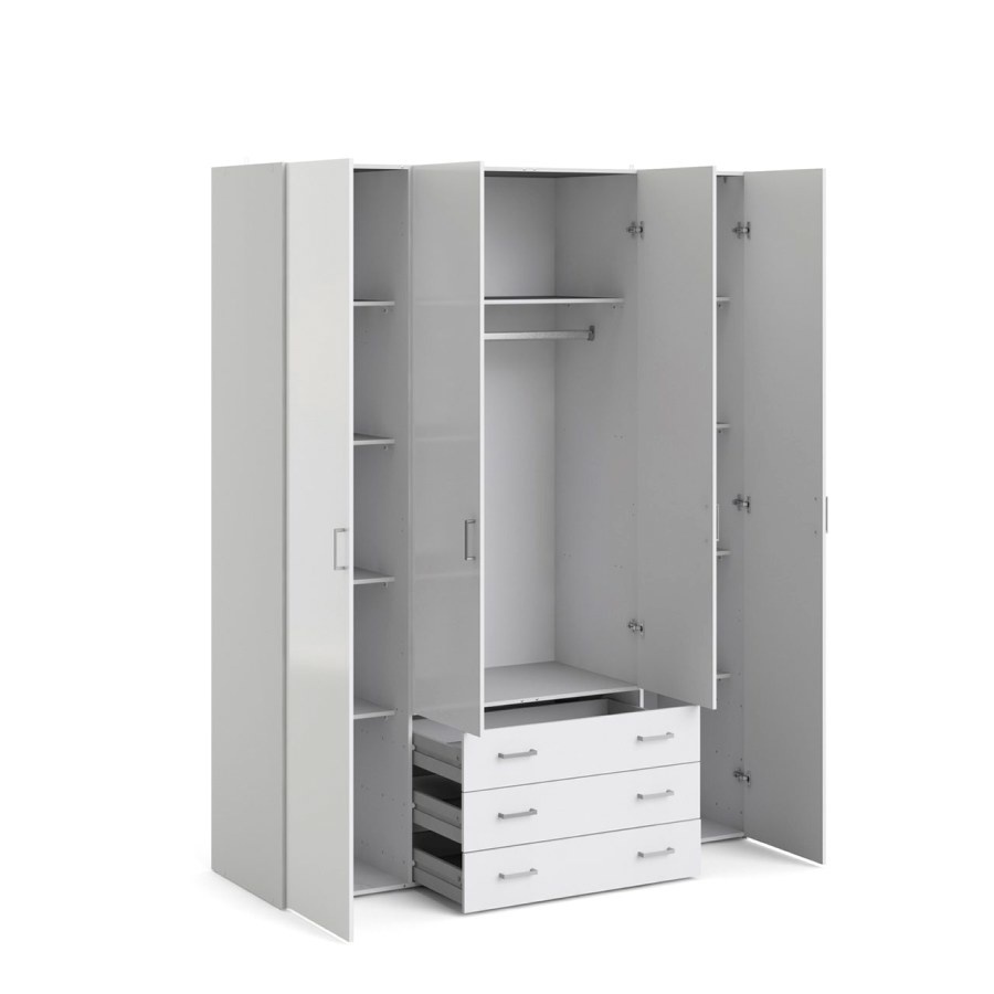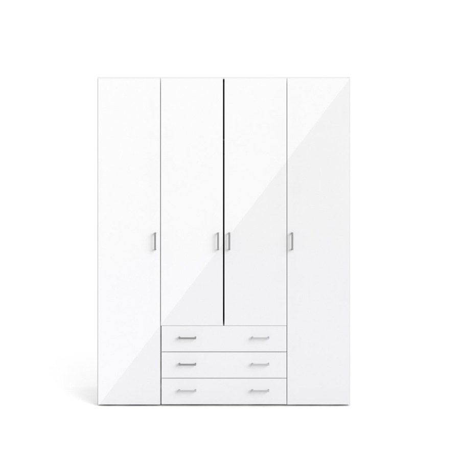 Spell kledingkast 4 deuren, 3 lades wit, wit hoogglans.