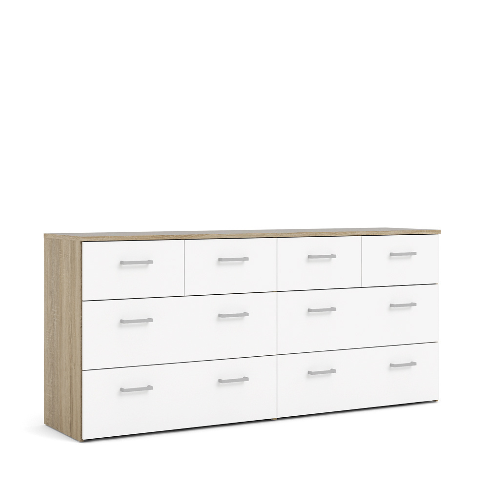 Ladekast breed 4 kleine en 4 grote laden eiken decor, wit. Je ontvangt meubels van een goede kwaliteit met een aangenaam comfort, gemaakt in een stijlvol en mooi design. Onze meubels zijn zeer aantrekkelijk geprijsd. Creëer uw eigen persoonlijke stijl met een nieuw meubel. Combineer met kleinmeubels of een paar mooie woonaccessoires. Hier verkrijg je de nieuwe woningtrends, zoals je ze in tijdschriften en magazines ziet. Bij ons vindt u unieke, praktische en comfortabele meubels met elk zijn eigen, mooi en apart design.