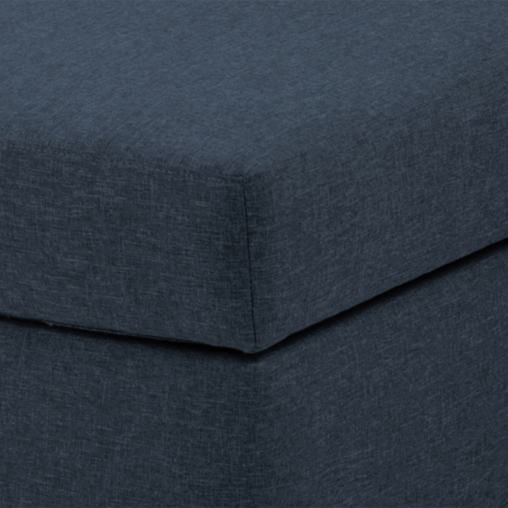 Stan slaapbank, hoek links met chaise longue rechts, in blauw.