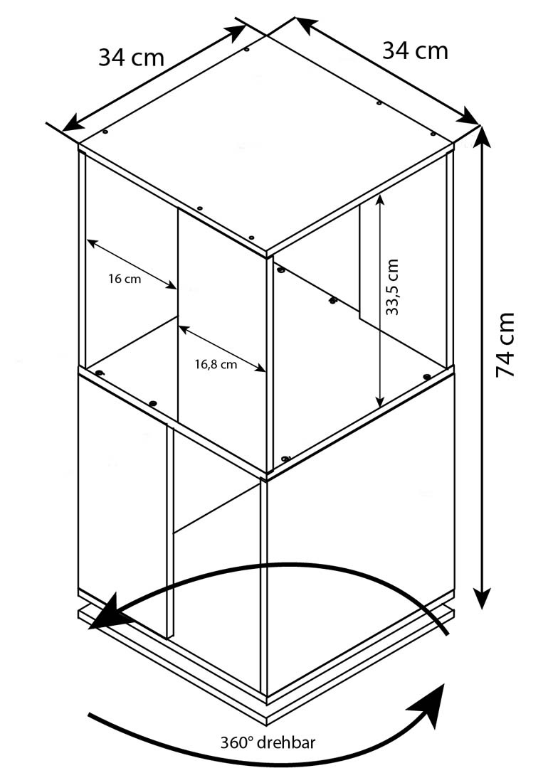 Productafmetingen: Breedte: 34 cm Diepte: 34 cm Hoogte: 74 cm