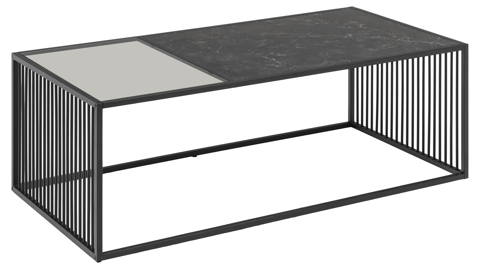 ebuy24 Stig salontafel 120x60 cm glas, rookkleurig, zwart marmer decor.
