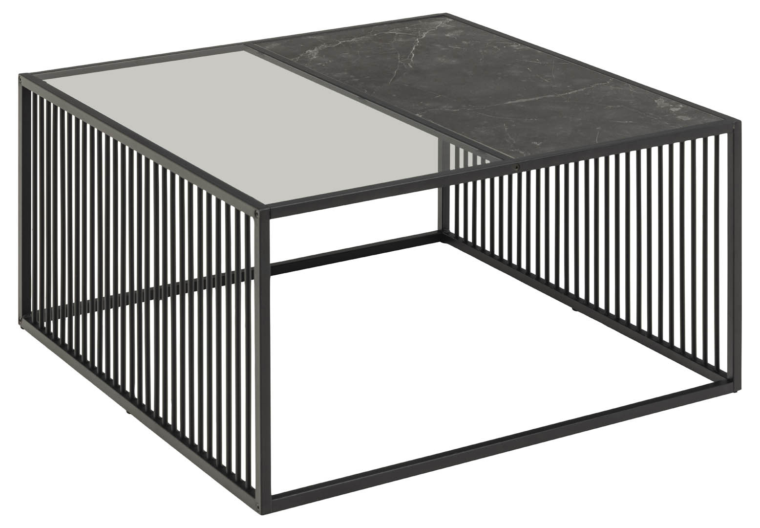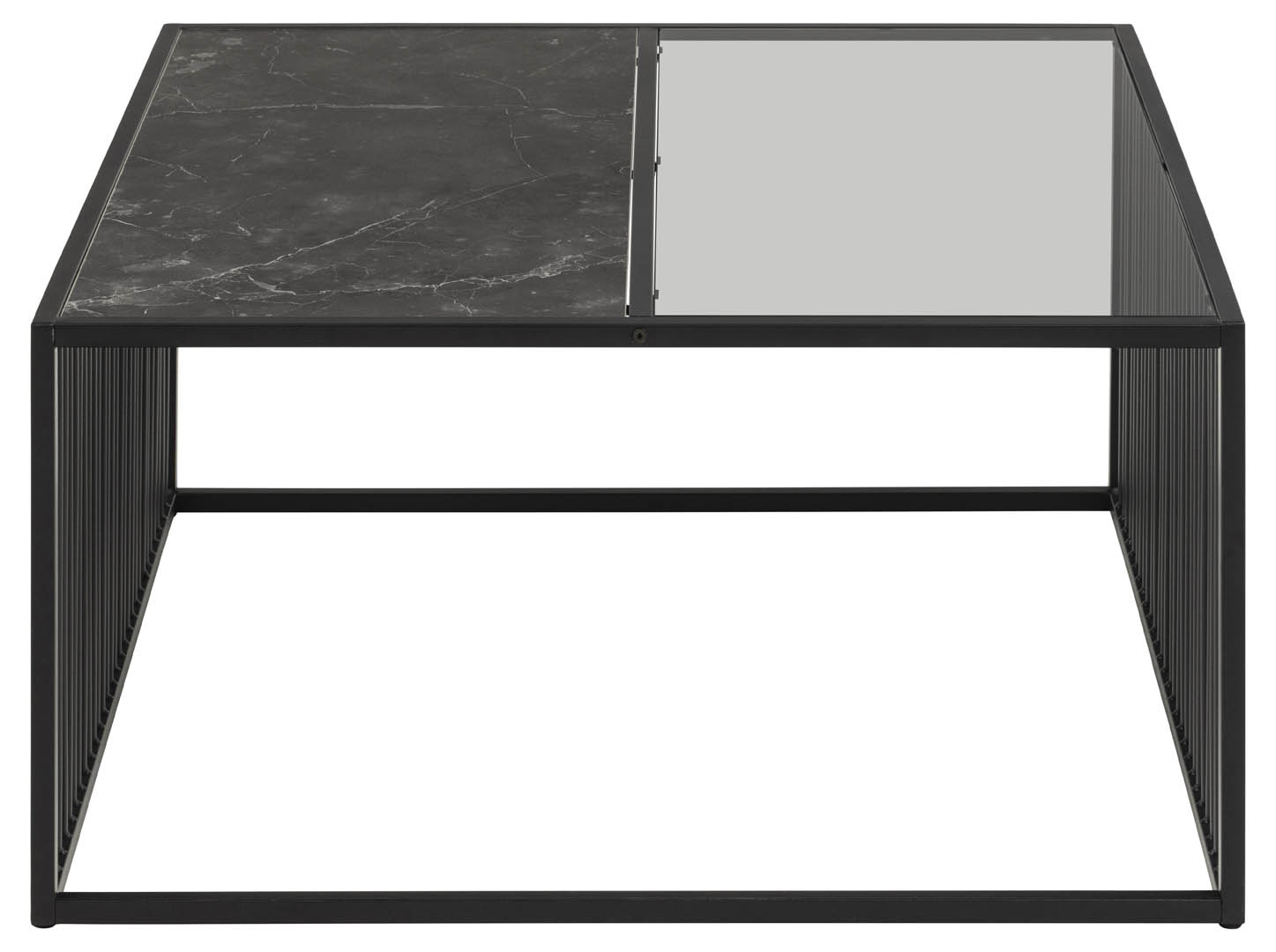 ebuy24 Stig salontafel 80x80 cm glas rookkleurig, zwart marmer decor.