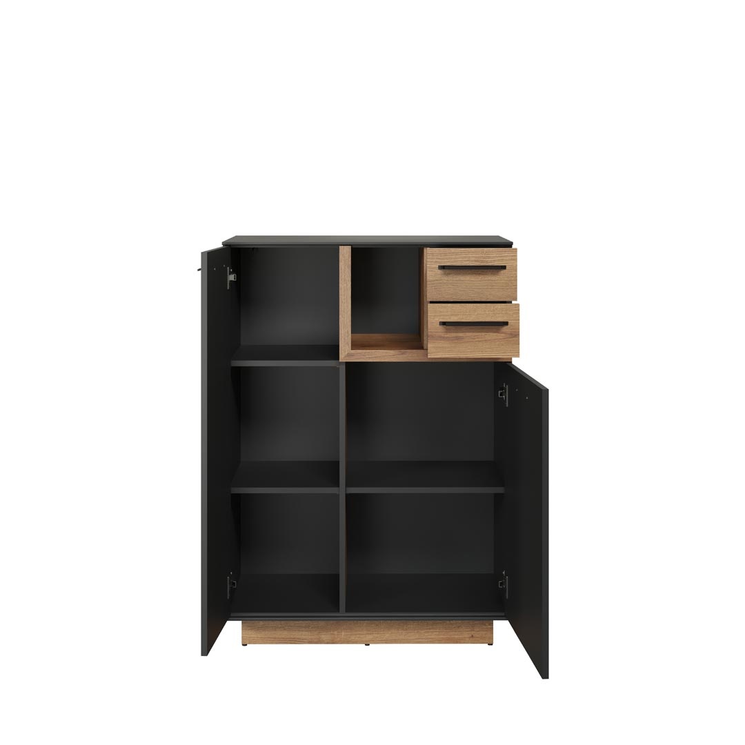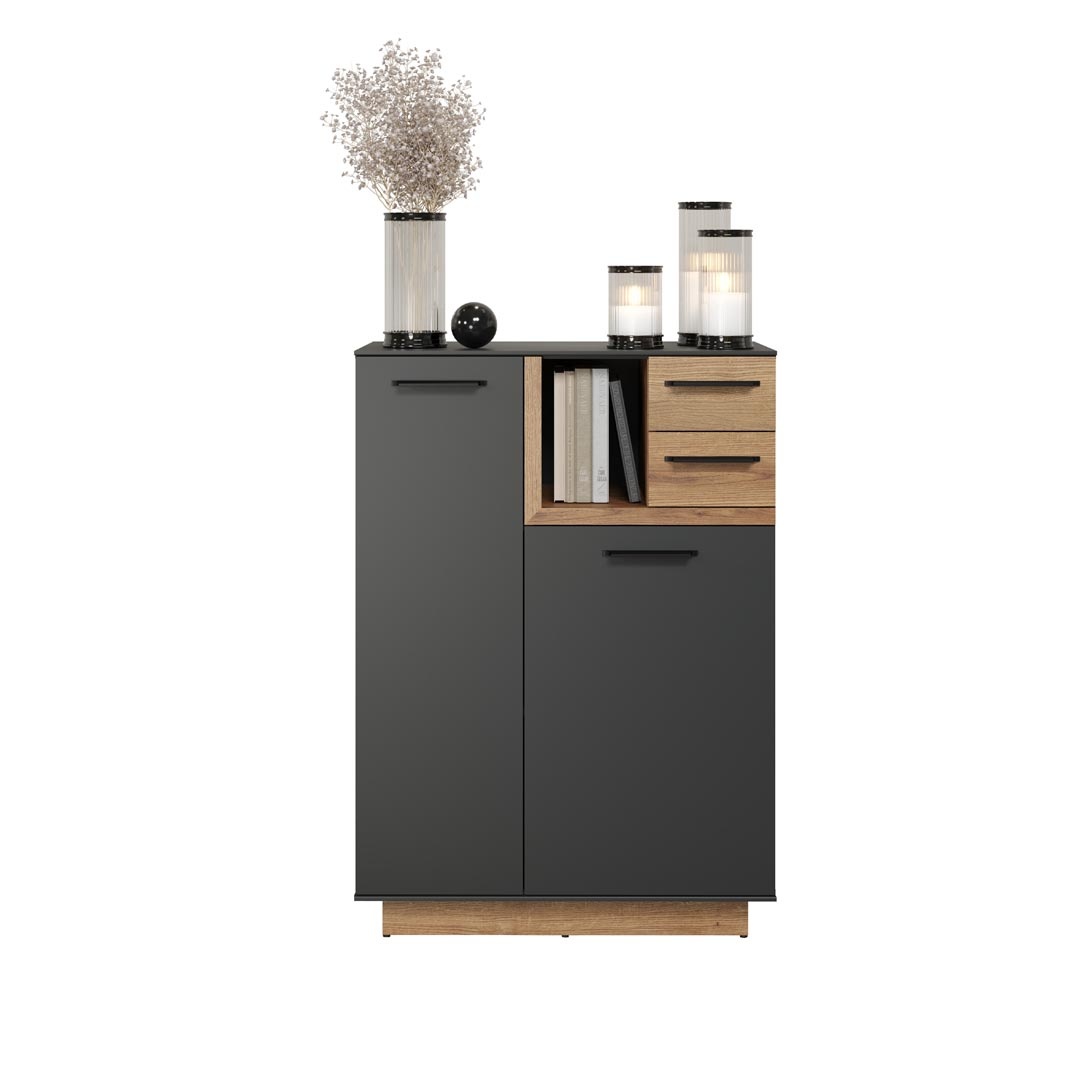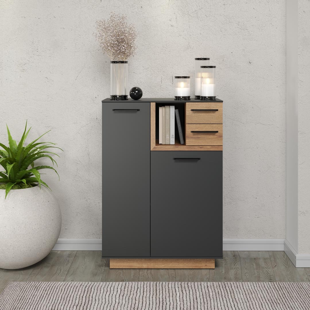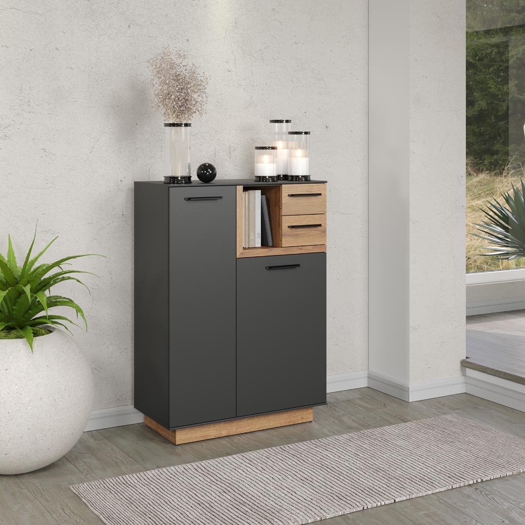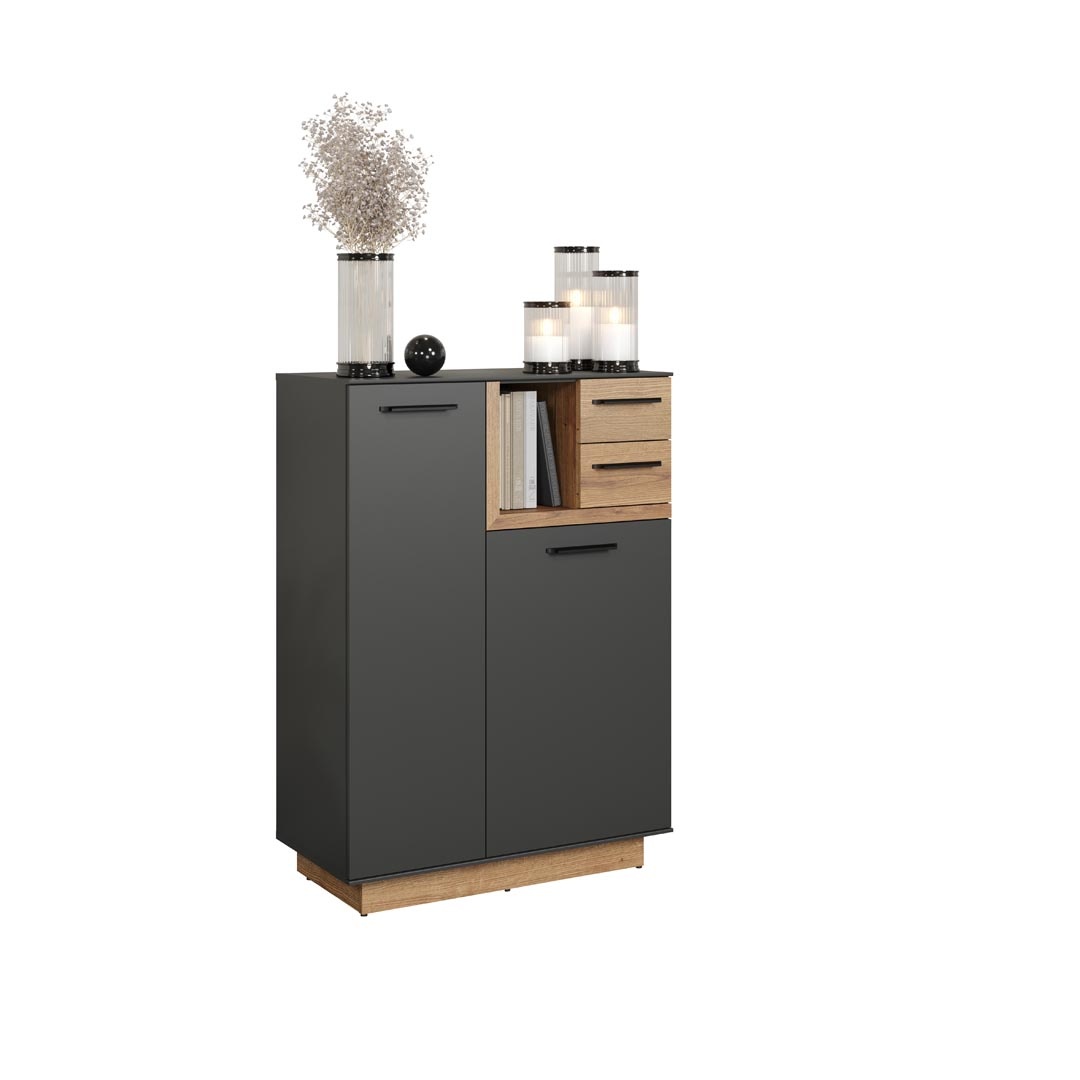 ebuy24 Synnax dressoir 1 grootdeur, 1 klein deur, 1 plank, 2 laden grijs,eik decor.