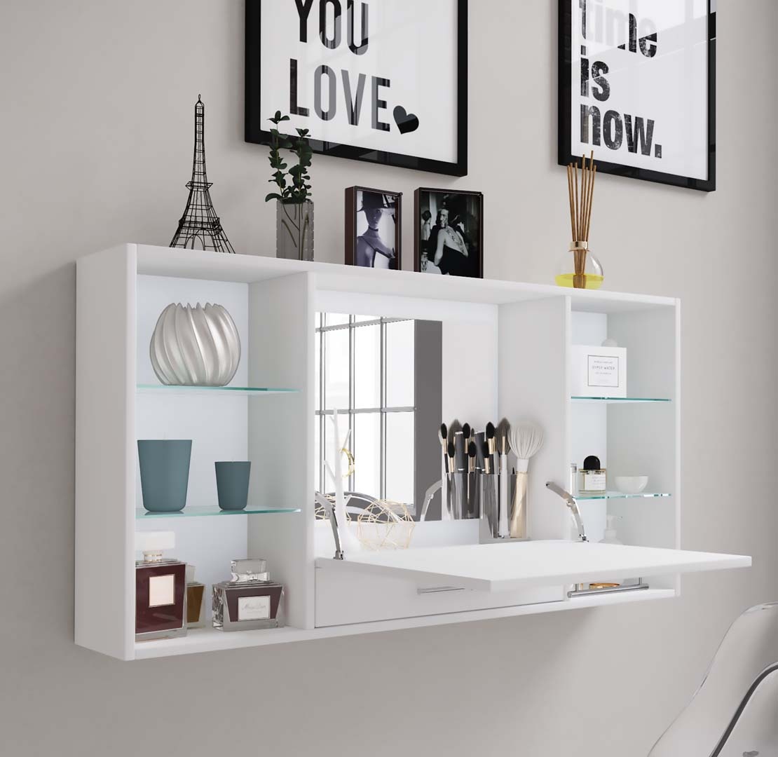 ebuy24 TealaS sidetable kaptafel wandmontage 1 kleppe spiegel 6 planken wit.