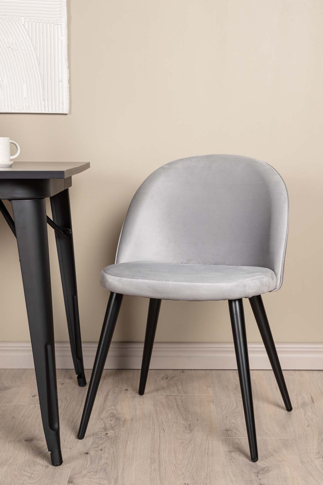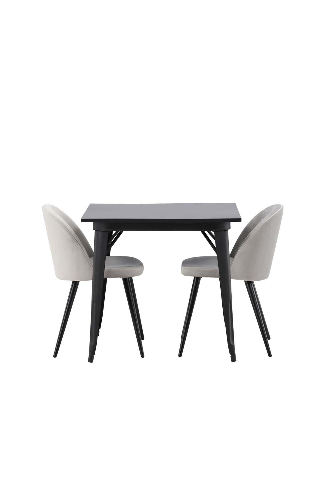ebuy24 Tempe eethoek tafel zwart en 2 Velvet stoelen grijs.