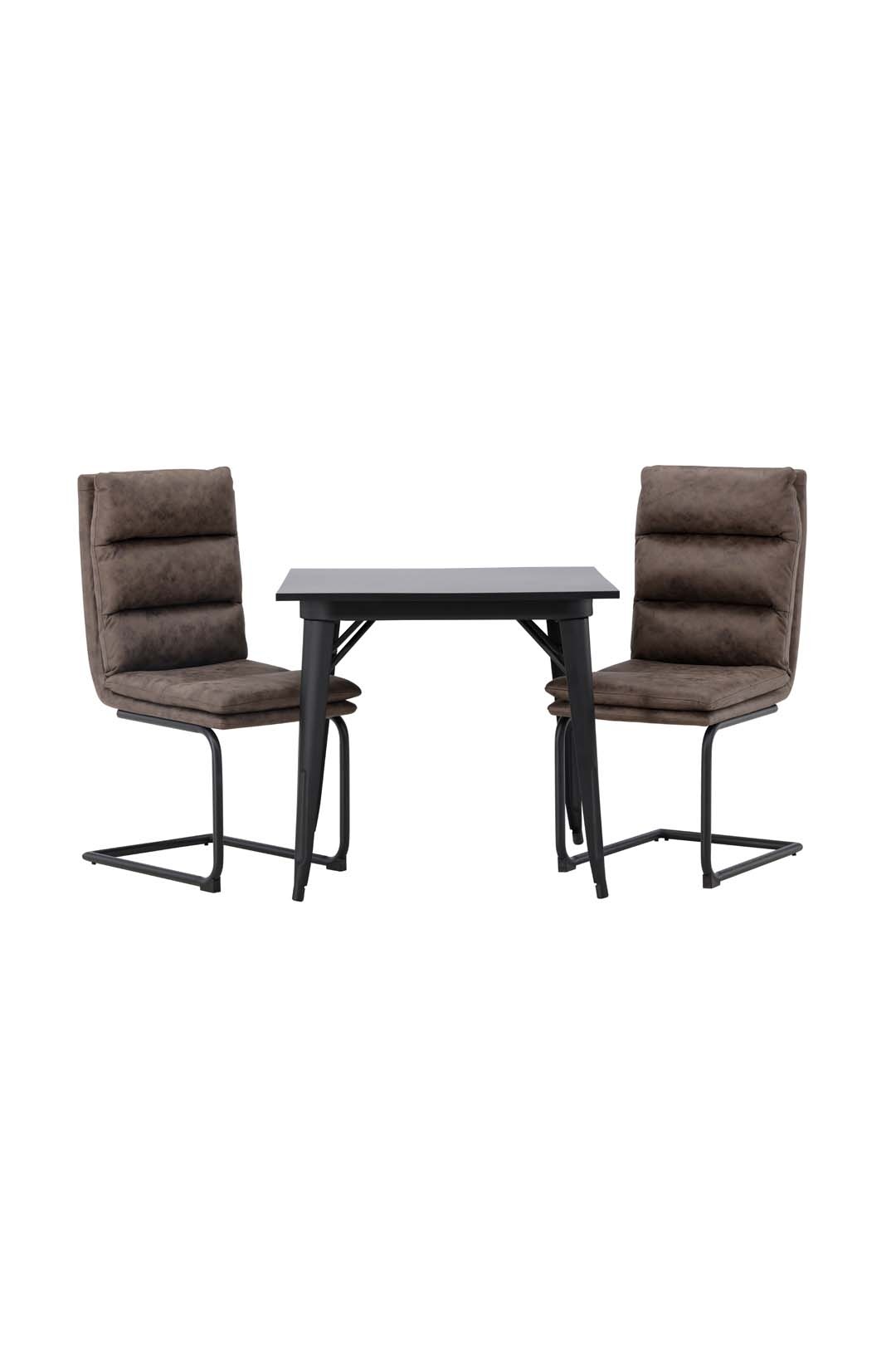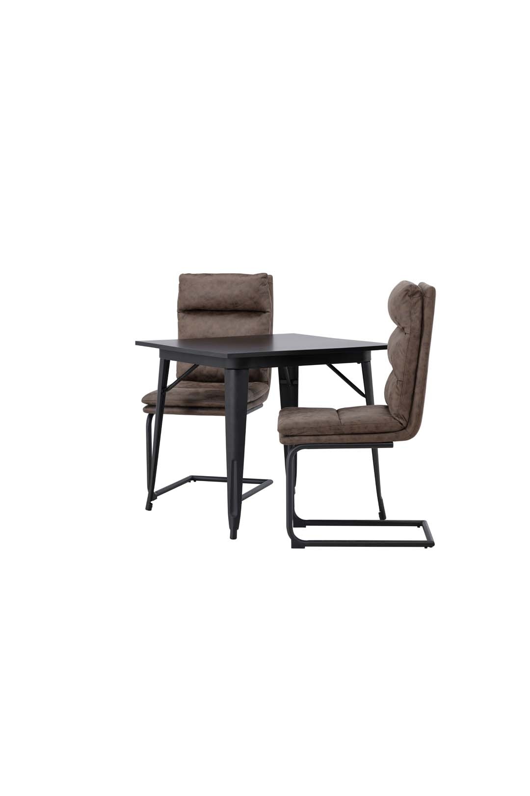 ebuy24 Tempe eethoek tafel zwart en 2 Zizo stoelen bruin.
