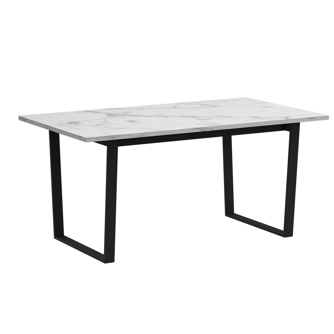 ebuy24 Tilst eethoek eettafel wit marmer print en 4 stoelen fluweel beige.