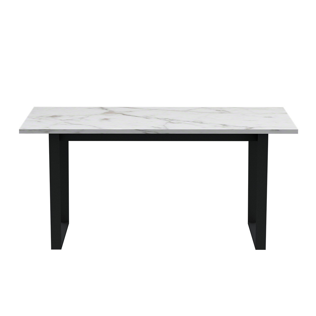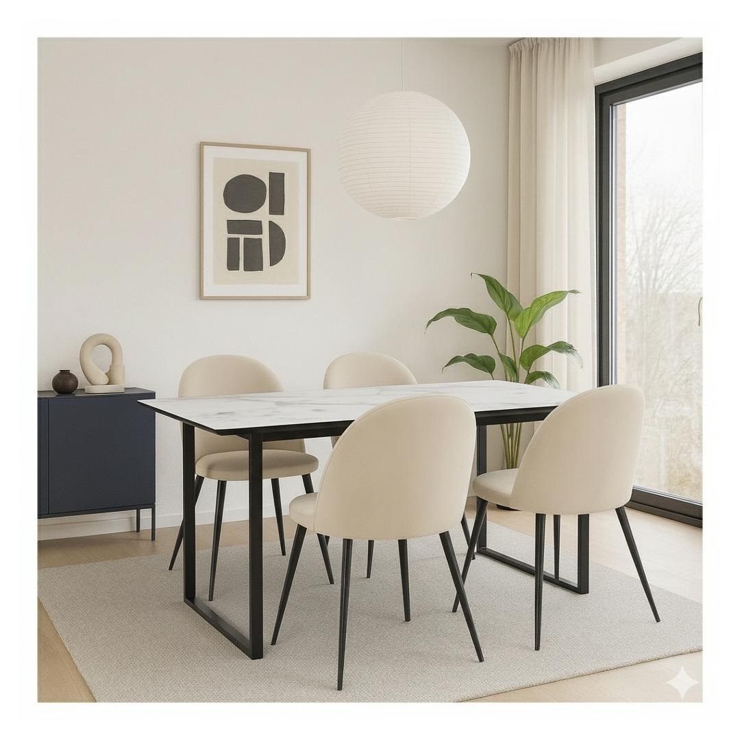 ebuy24 Tilst eethoek eettafel wit marmerprint 90x160 4 stoelen velours beige.
