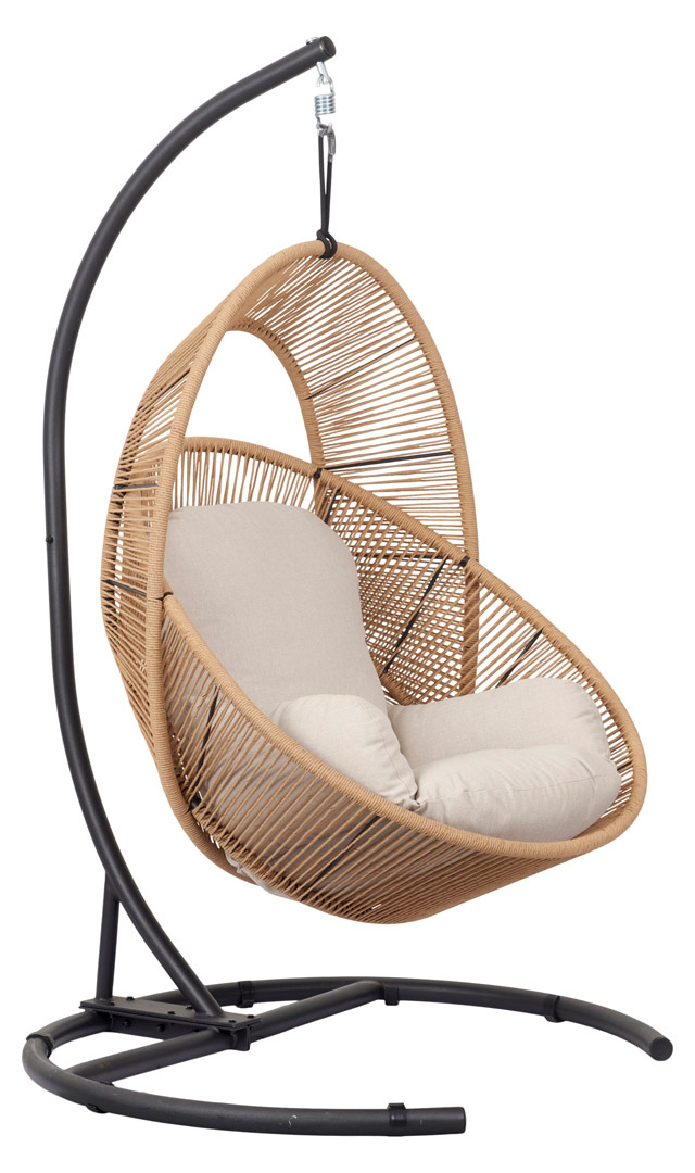 ebuy24 Tim loungemeubel hangstoel met kussen zwart, natuur.