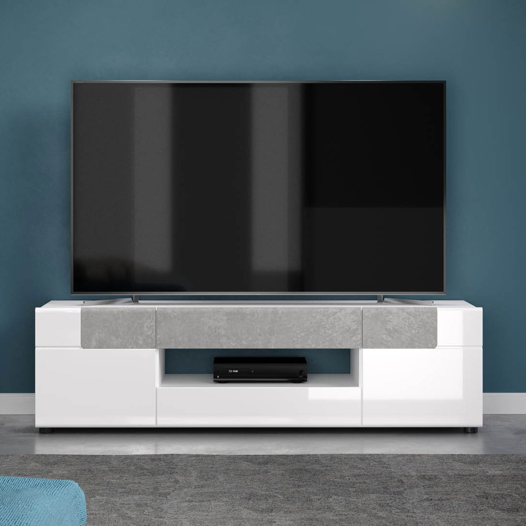 ebuy24 Tokyo TV-meubel 2 deuren, 2 laden, 1 extra tv plank, wit hoogglans.