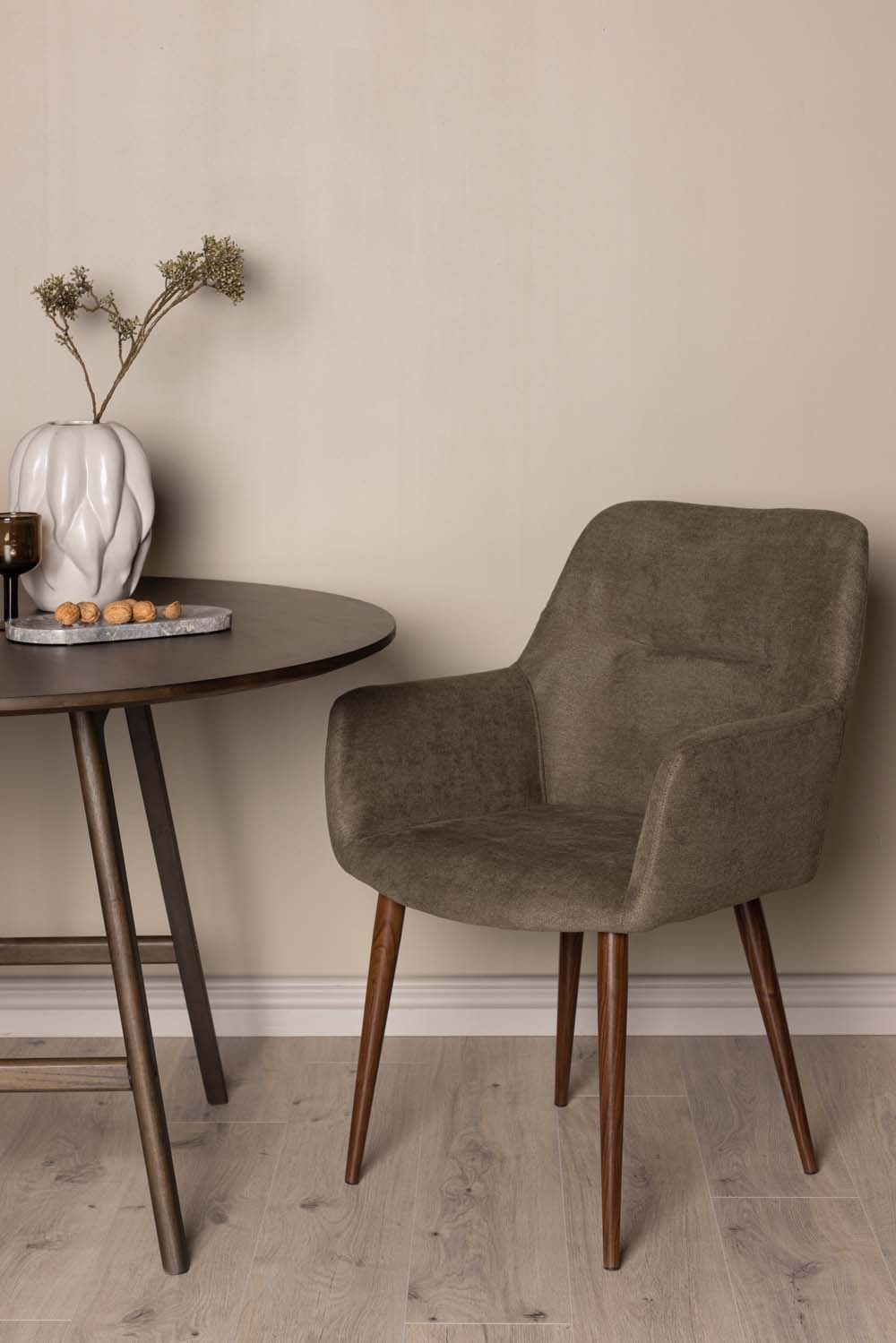 Tomorrow eetkamerstoel met armleuningen bruin. Opgepast! De stoelen zijn per 2 verpakt, daarom is het enkel mogelijk de stoelen in een even aantal te bestellen. De prijs is per stuk.