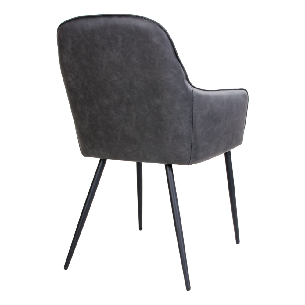 Stoel: Kunstleer, metaal. Tafel: Eikenhout gerookt geolied, metaal.