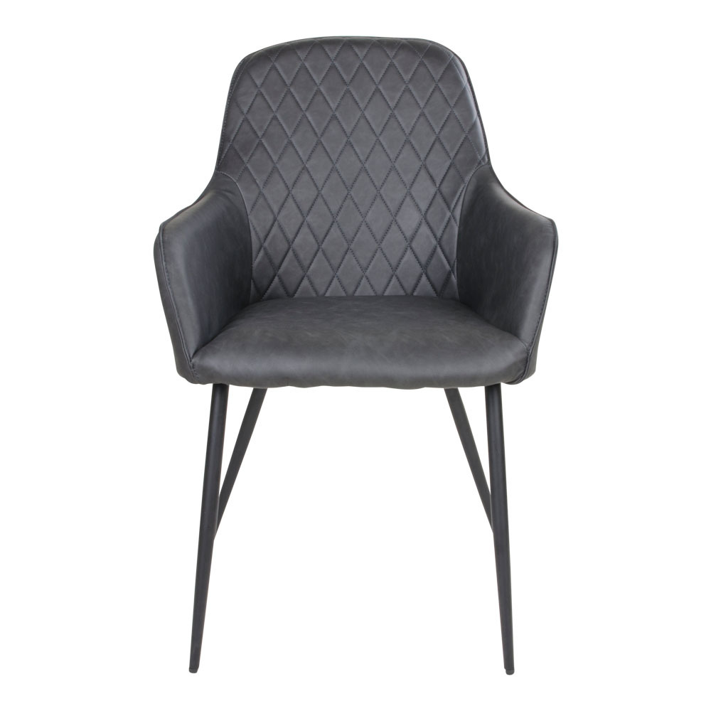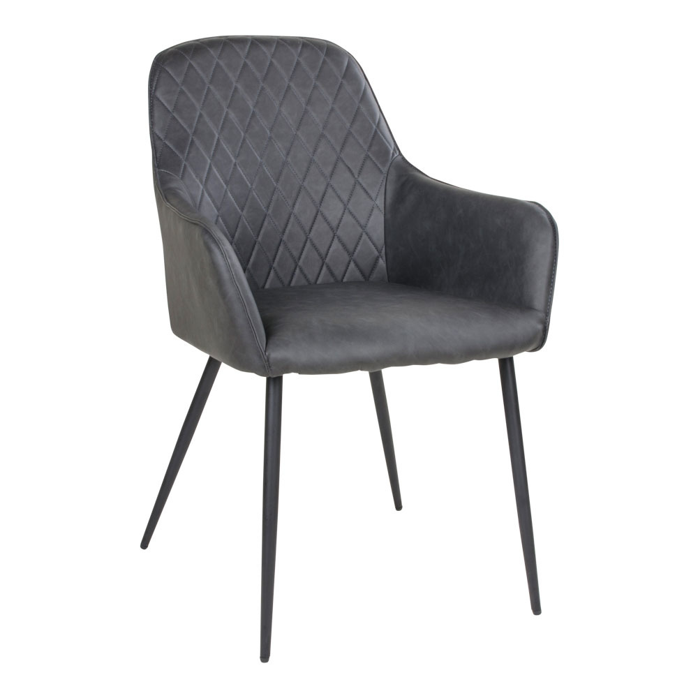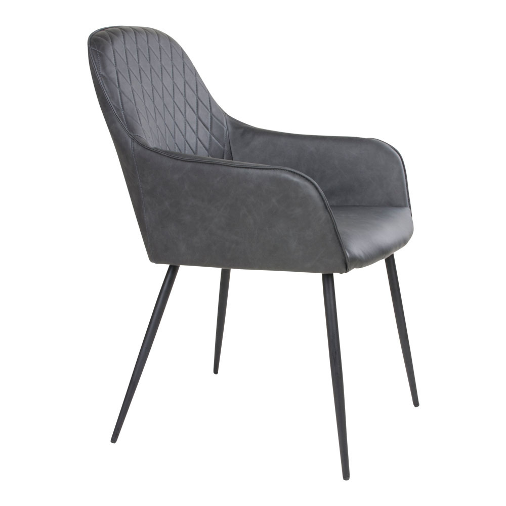 Materiaal: Tafel: Gerookt eikenhout geolied, metaal. Stoel: PU kunstleer, metaal.