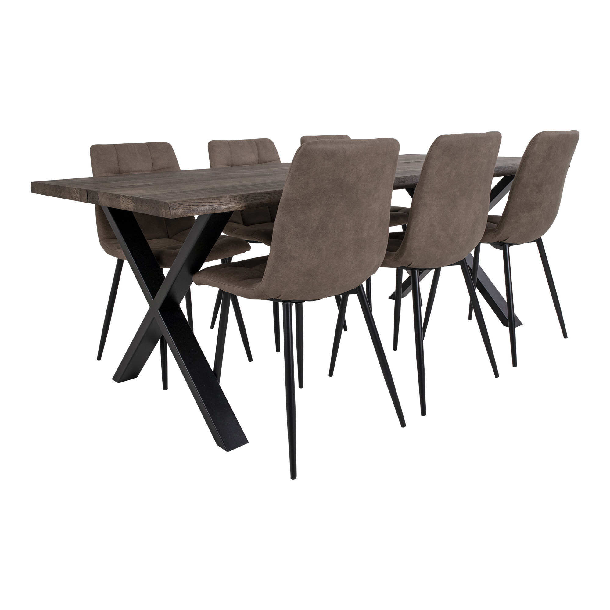 Materiaal: Tafel: Gerookt eikenhout, metaal. Stoel: Micro fiber, staal.Â