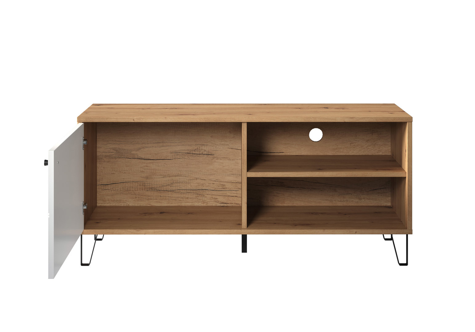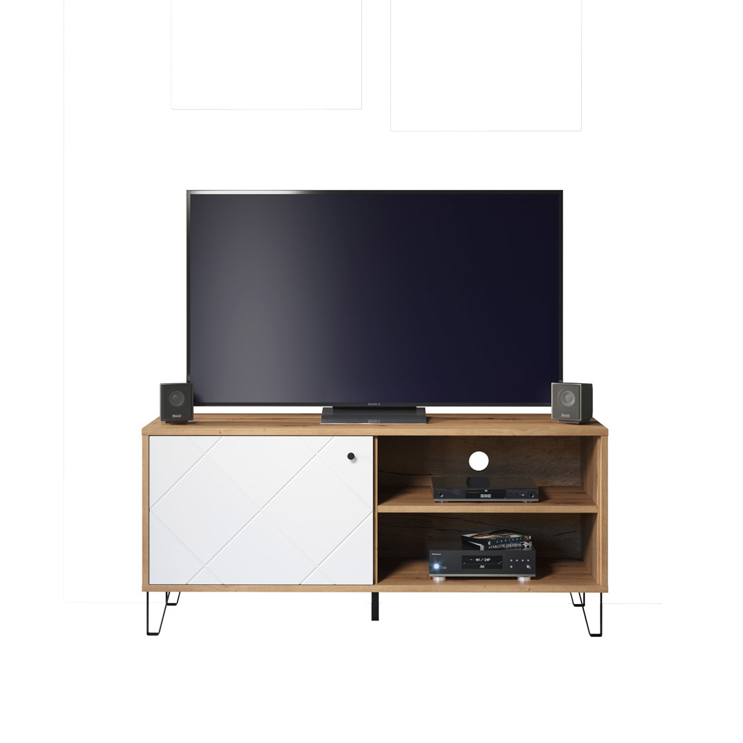 Touch TV-meubel 1 deur, 2 open vakken eiken decor, wit mat.