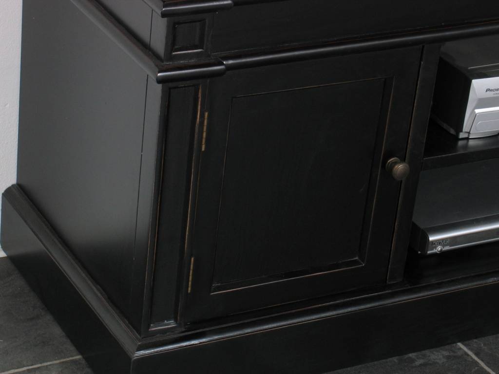 Massief houten TV meubel, met donkere laklaag! Dit stijlvolle meubel is een absolute blikvanger voor in de woonkamer! Bovendien is het goed te combineren met de andere meubels uit de gelijknamige serie, bijvoorbeeld de vitrinekast of buffetkast. ...Lees uitgebreide product informatie