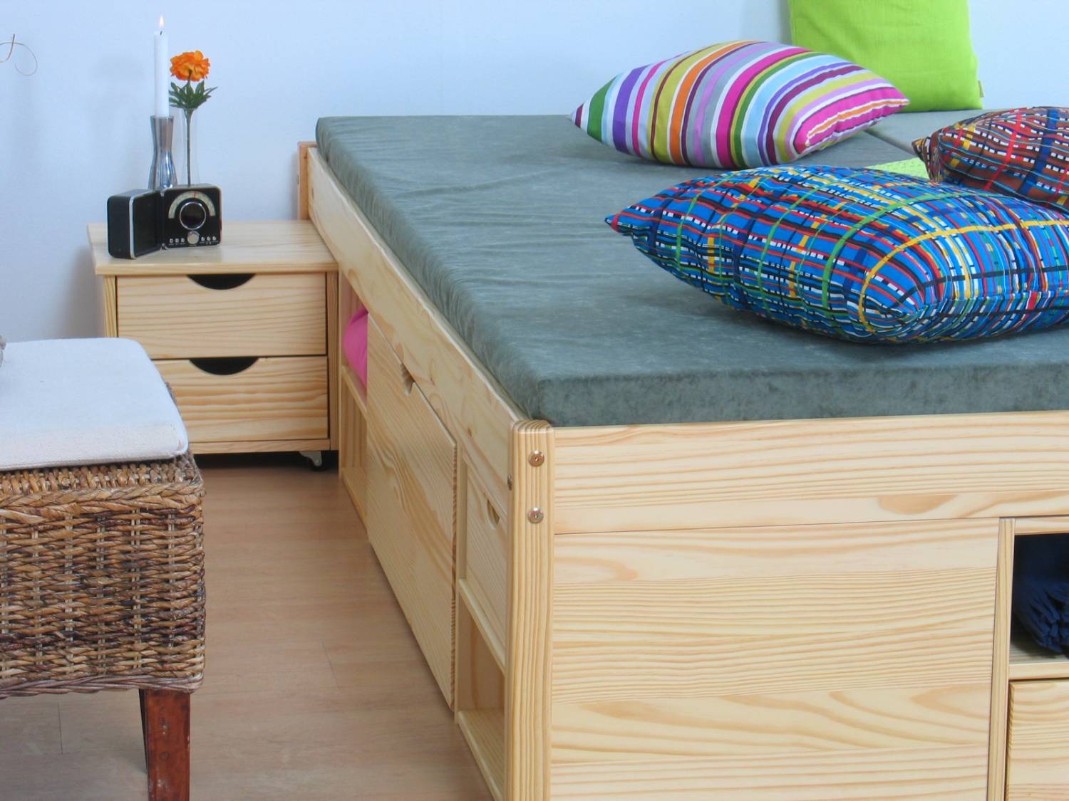 Dit zeer complete bed is nu ook verkrijgbaar met matrasmaat 140 bij 200 cm! Zoekt u een bed dat ook dienst doet als opbergruimte? Zoek dan niet verder! Het bed is gemaakt van massief grenenhout en is voorzien van een laklaag. ...Lees uitgebreide product informatie