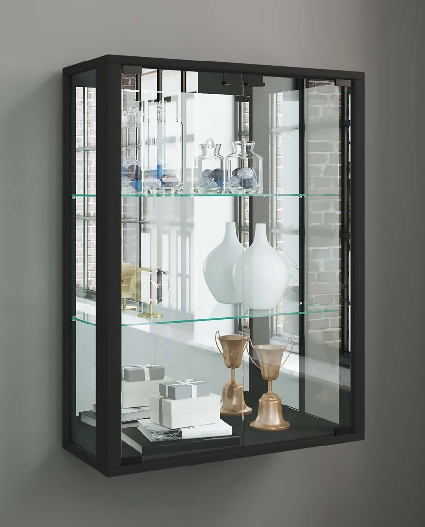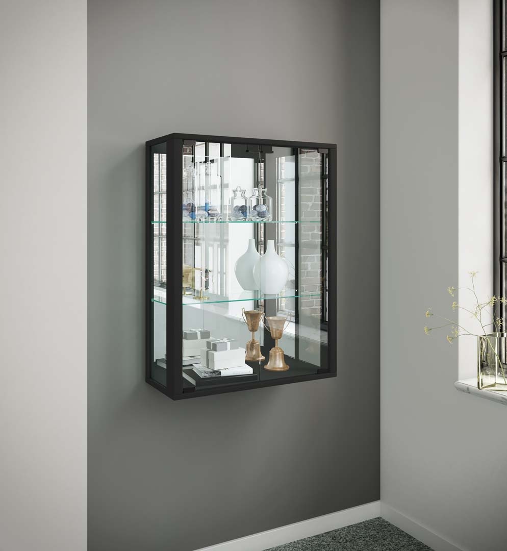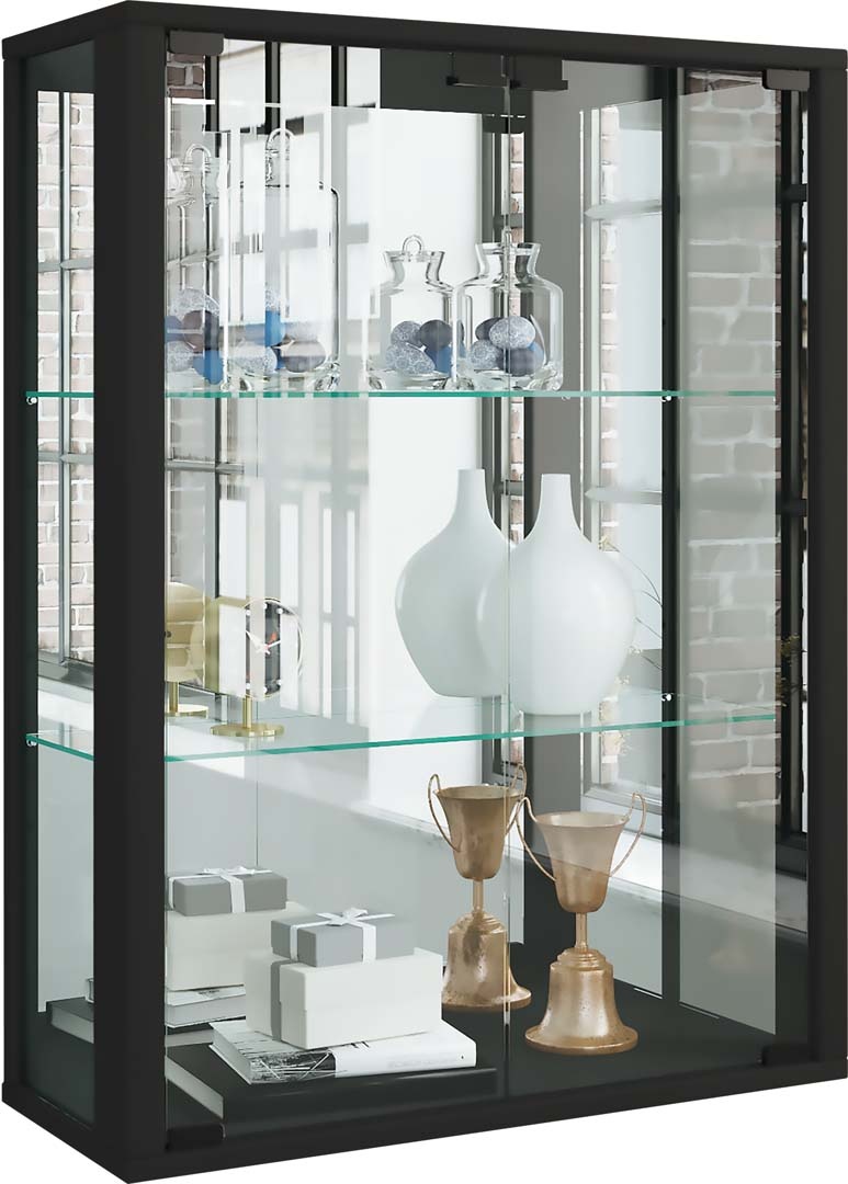 ebuy24 Udina vitrinekast wandmontage met spiegel 2 glazen deuren zwart.
