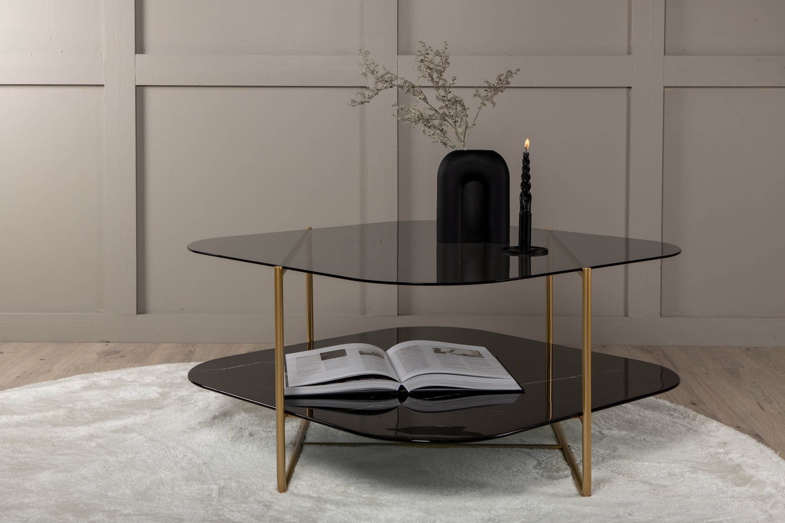 ebuy24 Un-line salontafel 85x85cm messing decor, glas rookkleurig.