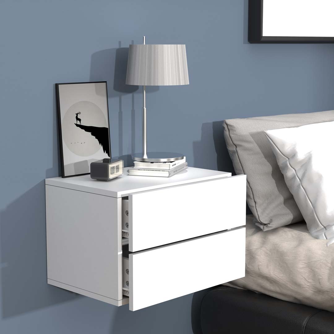 ebuy24 UsalL45 nachtkastje wandmontage 2 laden wit.