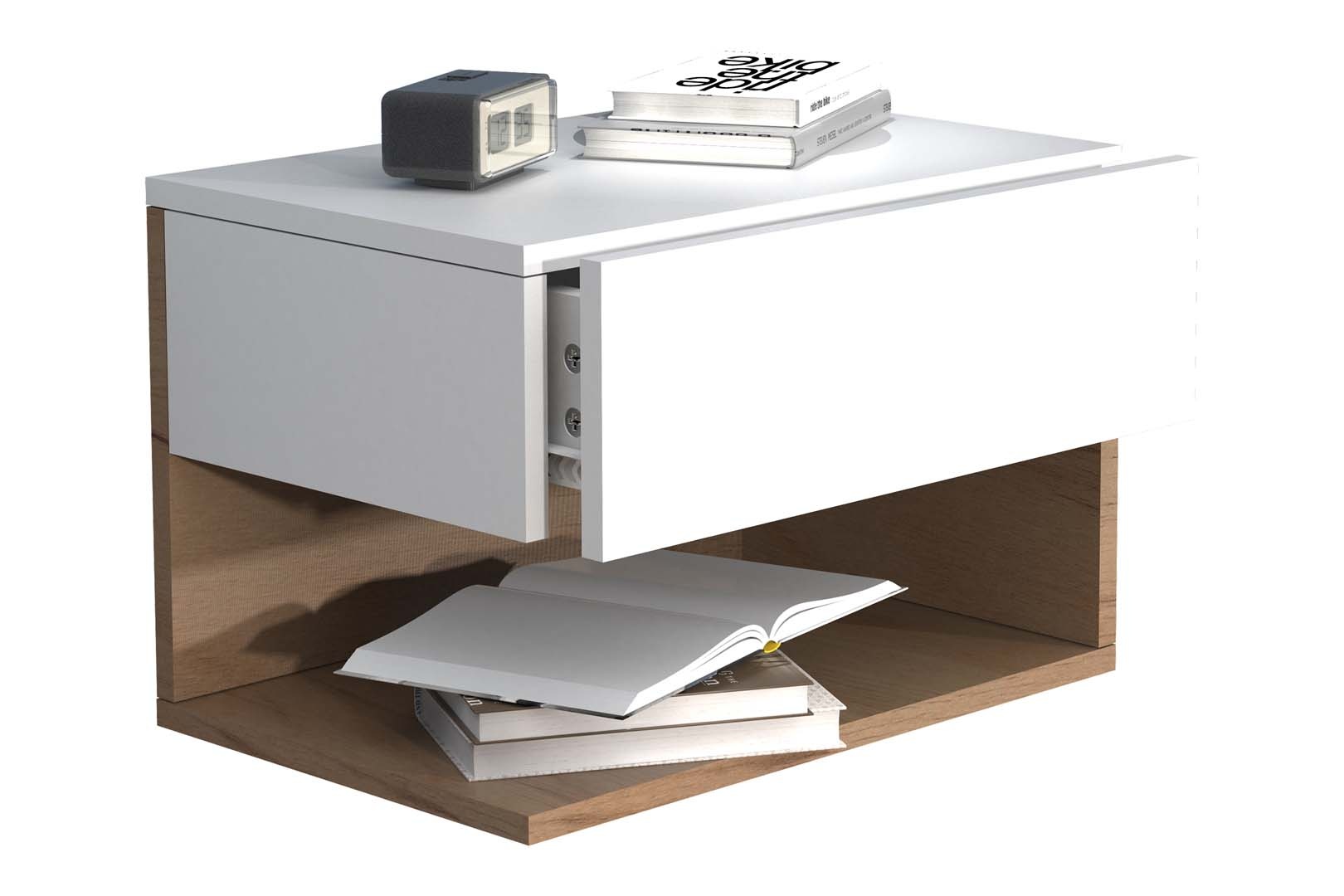 ebuy24 UsalXL45 nachtkastje wandmontage 1 lade 1 plank wit, eik decor.