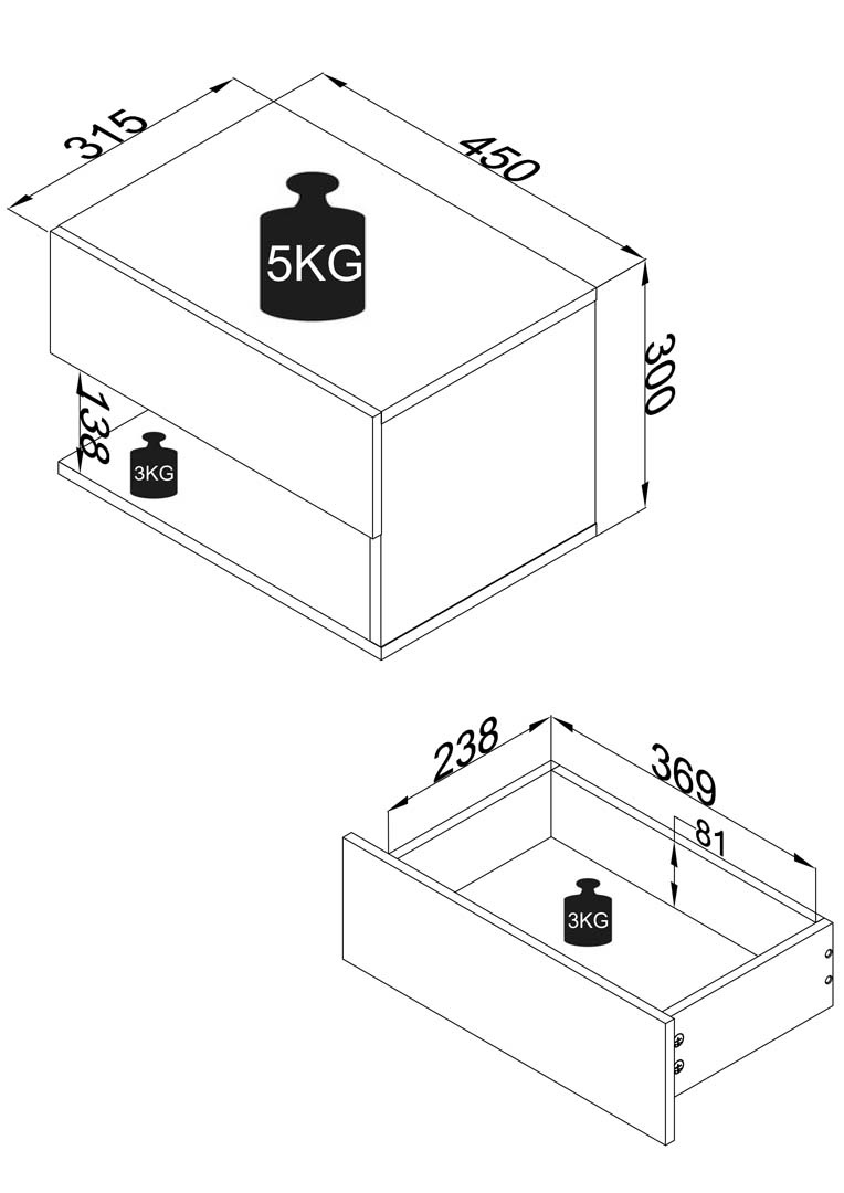 ebuy24 UsalXL45 nachtkastje wandmontage 1 lade 1 plank antraciet.