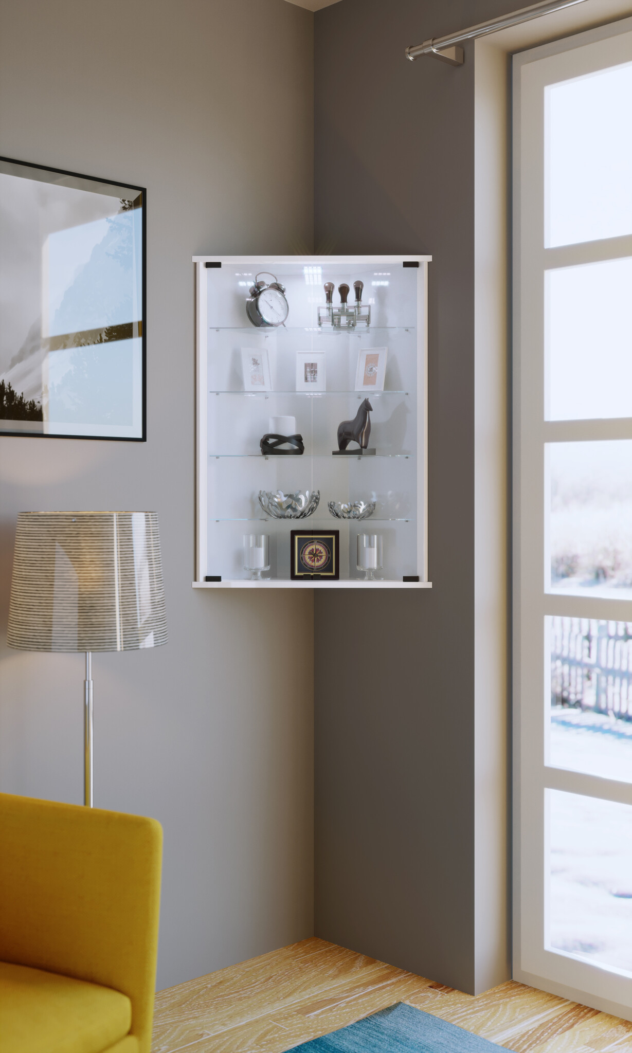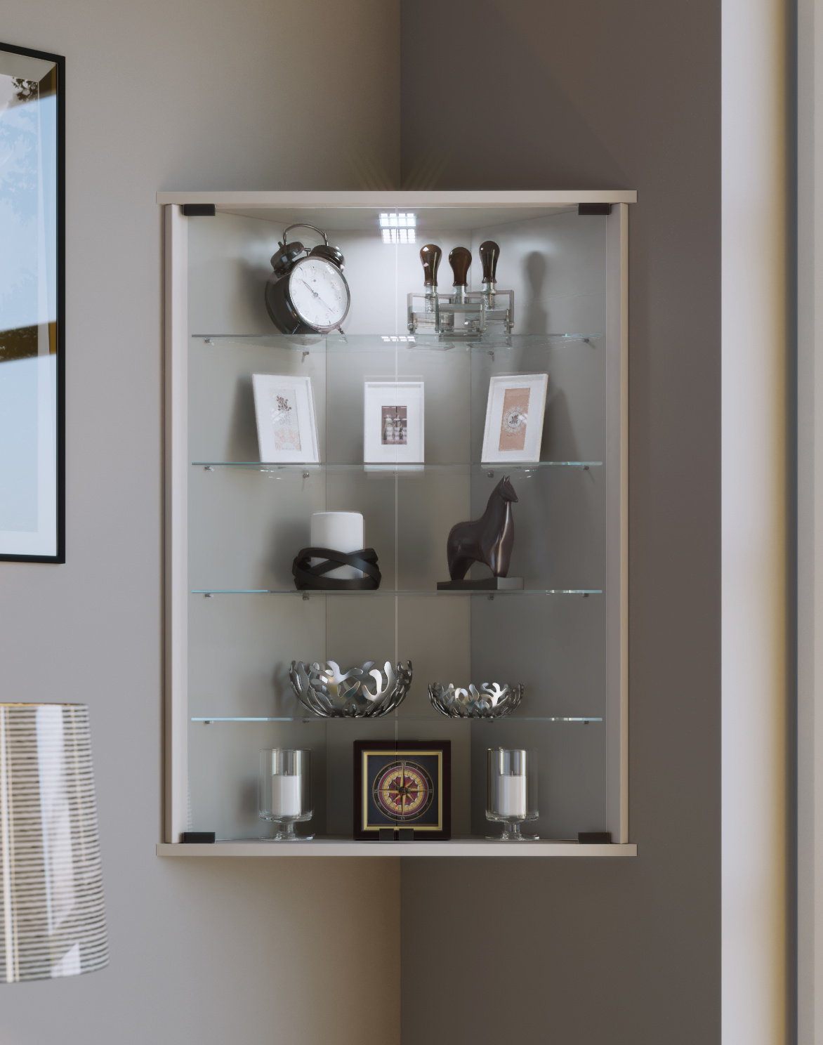 ebuy24 Vecko vitrinekast Hoek wandmodel met 2 glazen deurenwit.