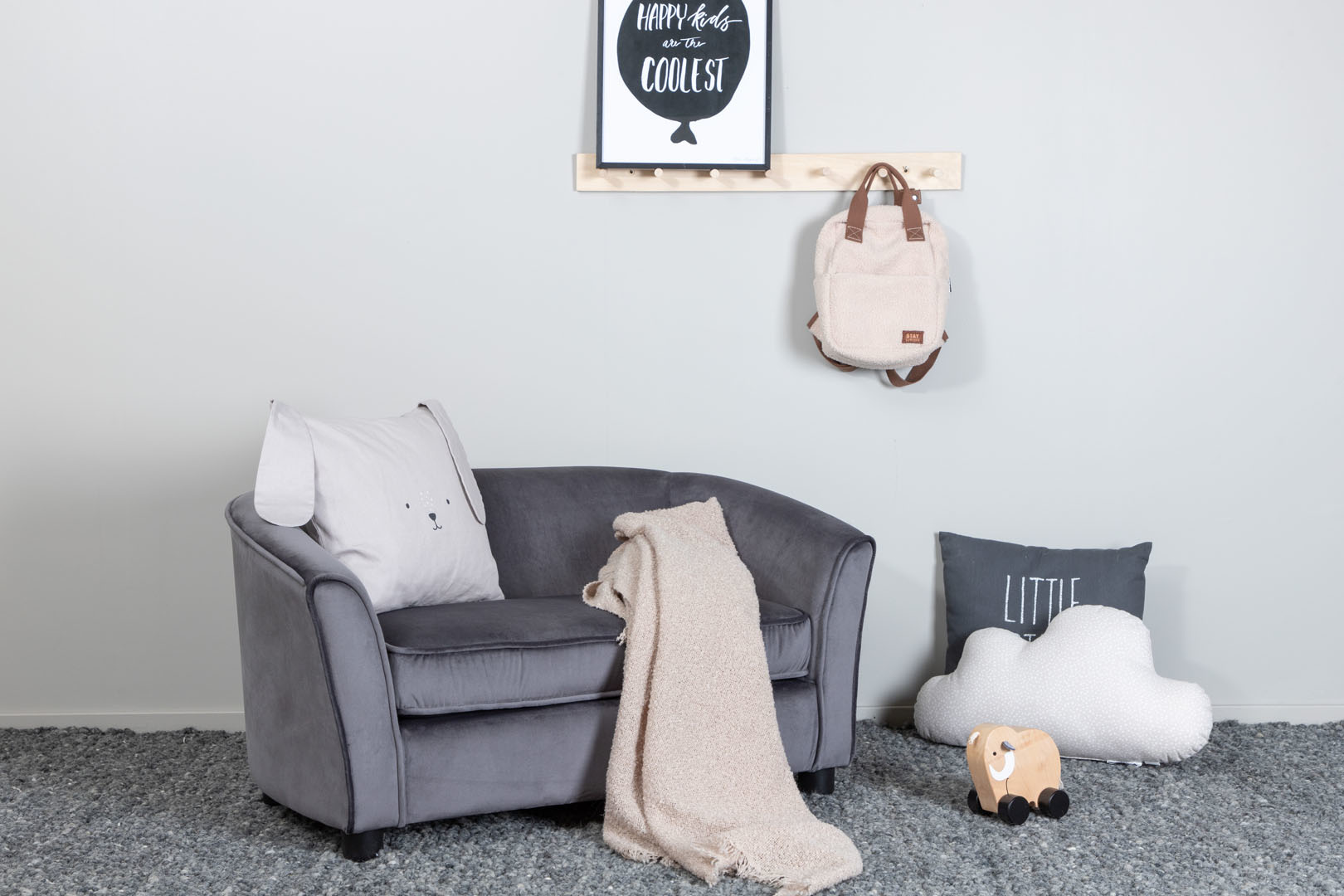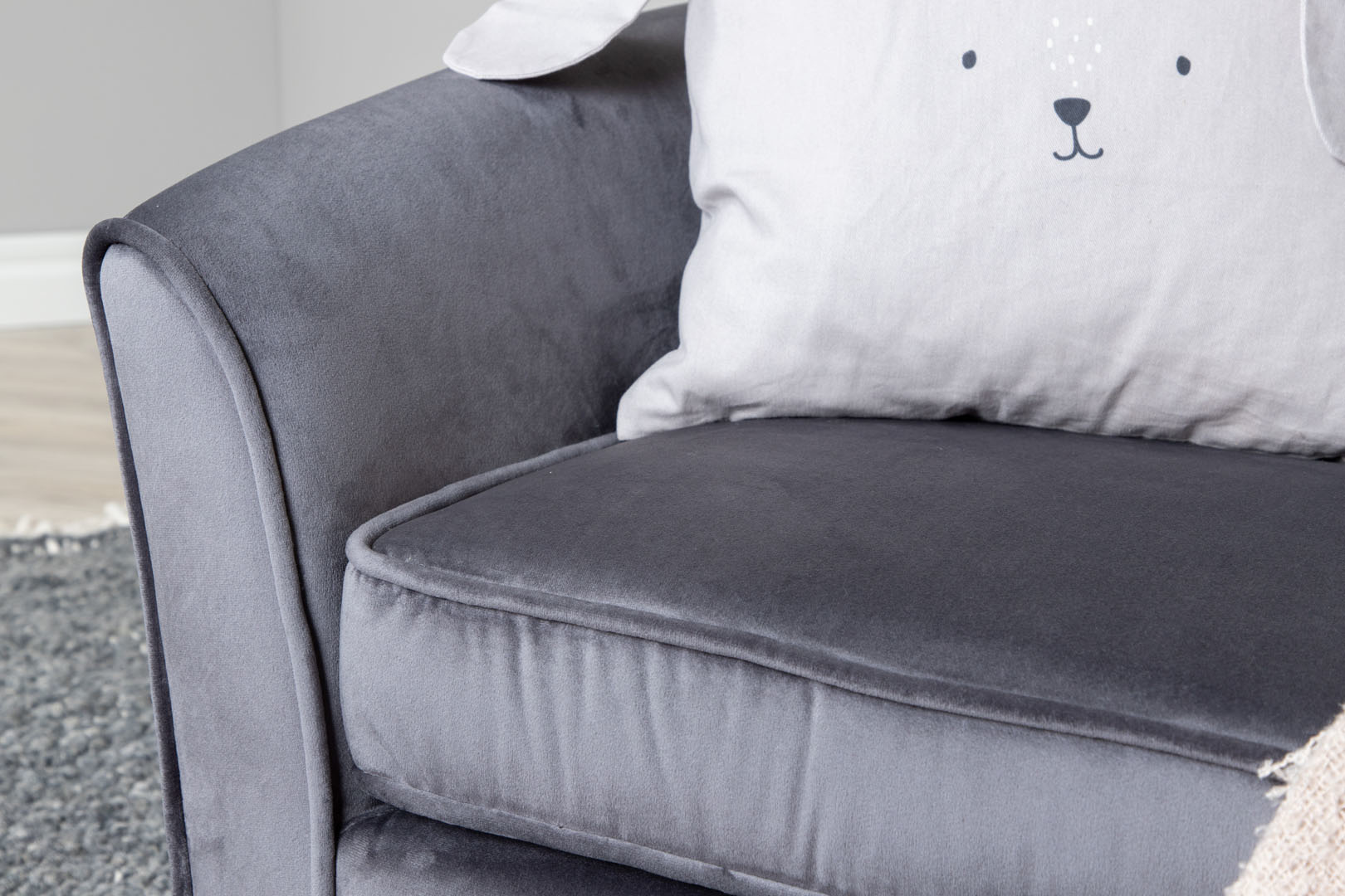 Velvet bank 2 persoons aan kinderen grijs.