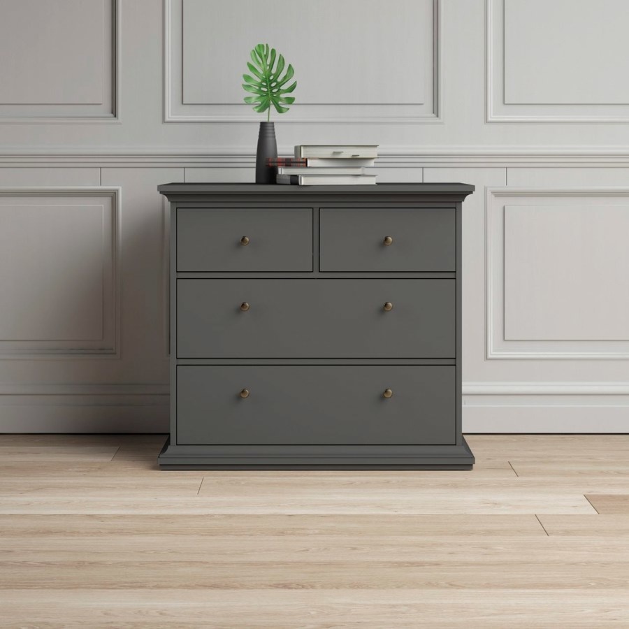 Venedig kommode 4 lades mat grijs.