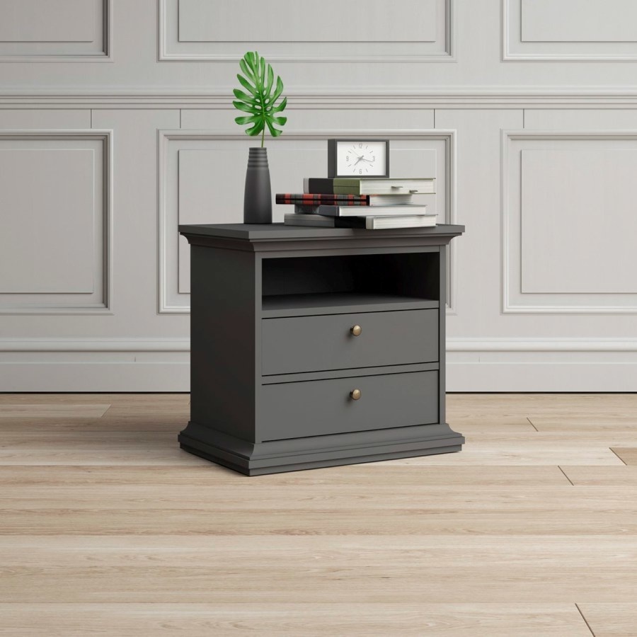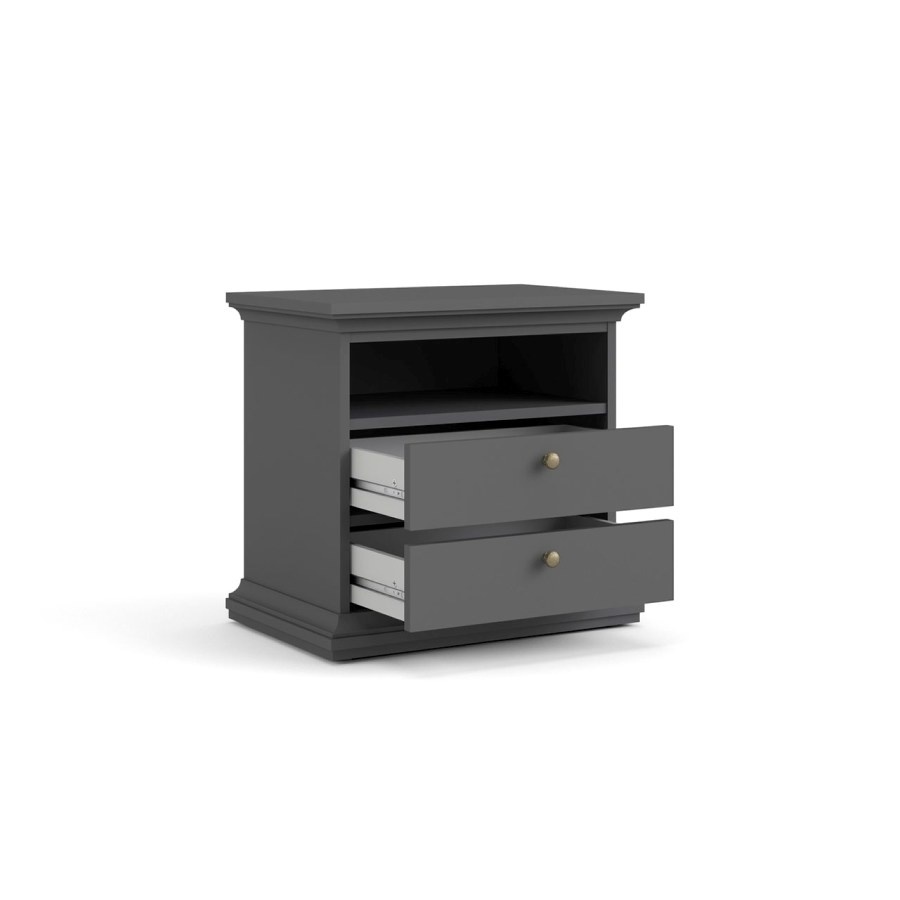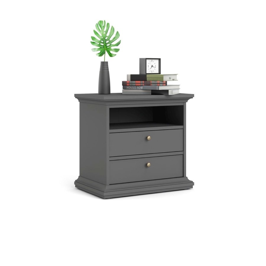 Venedig nachtkastje breed 2 lades en 1 vak mat grijs.