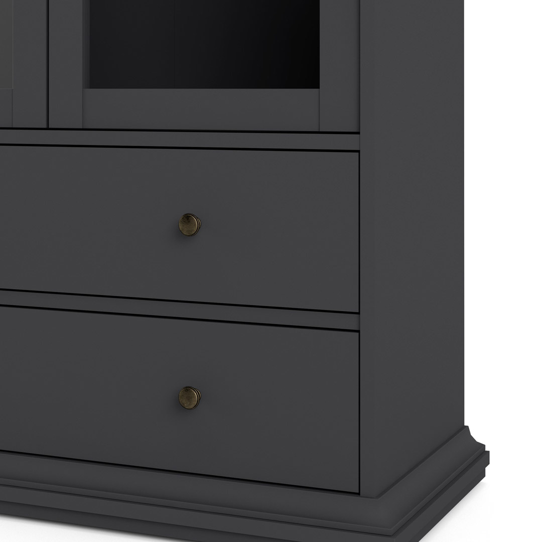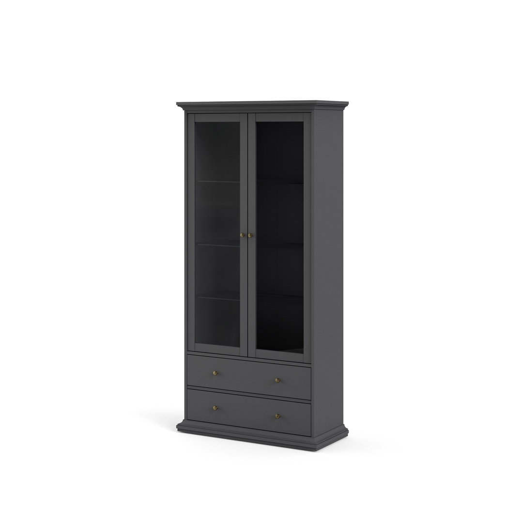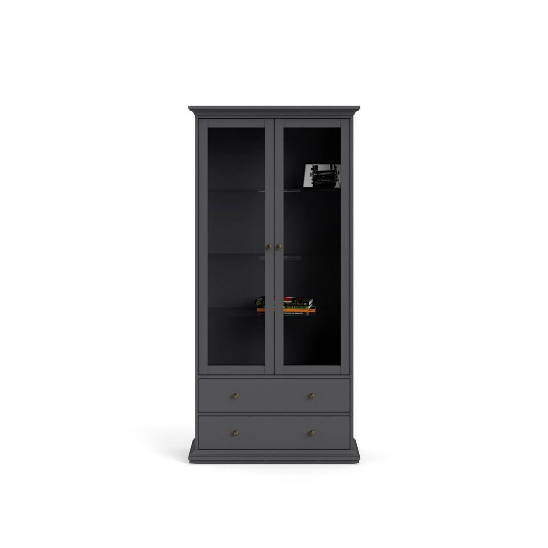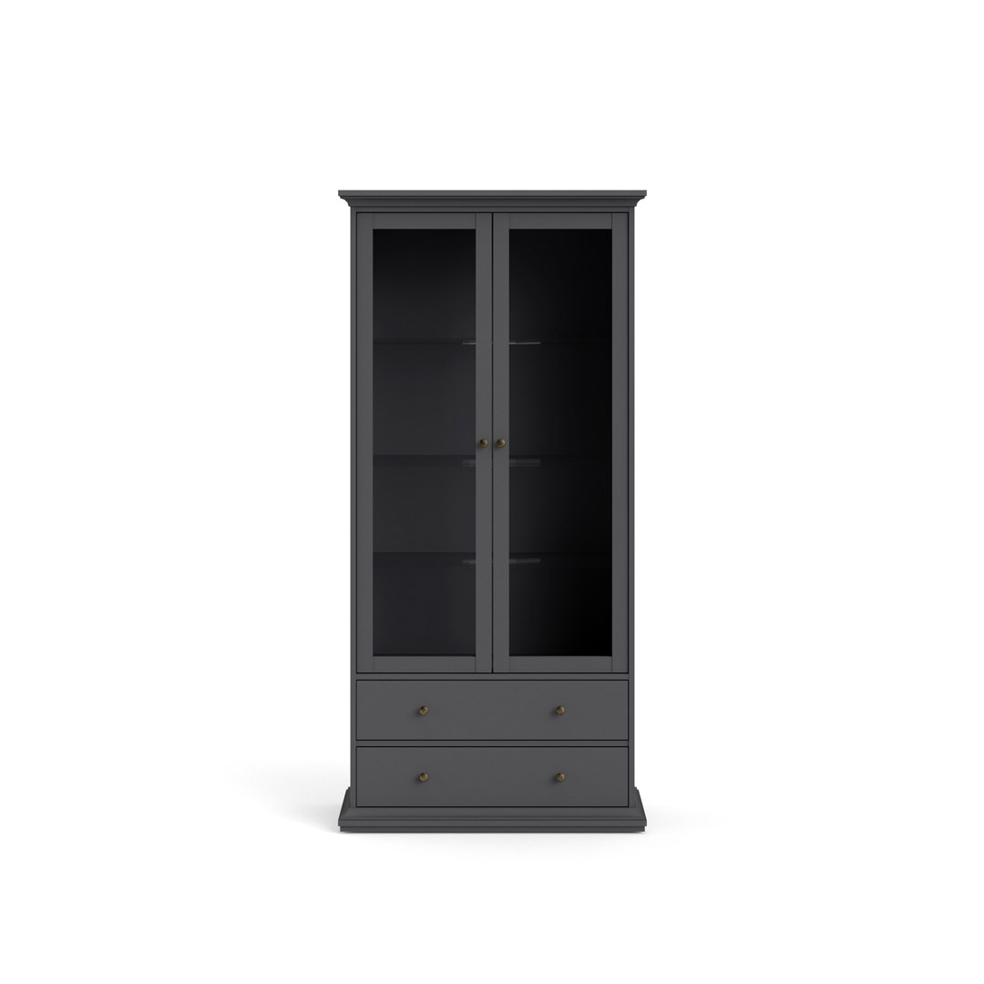Venedig vitrinekast 2 glazen deuren en 2 laden mat grijs.