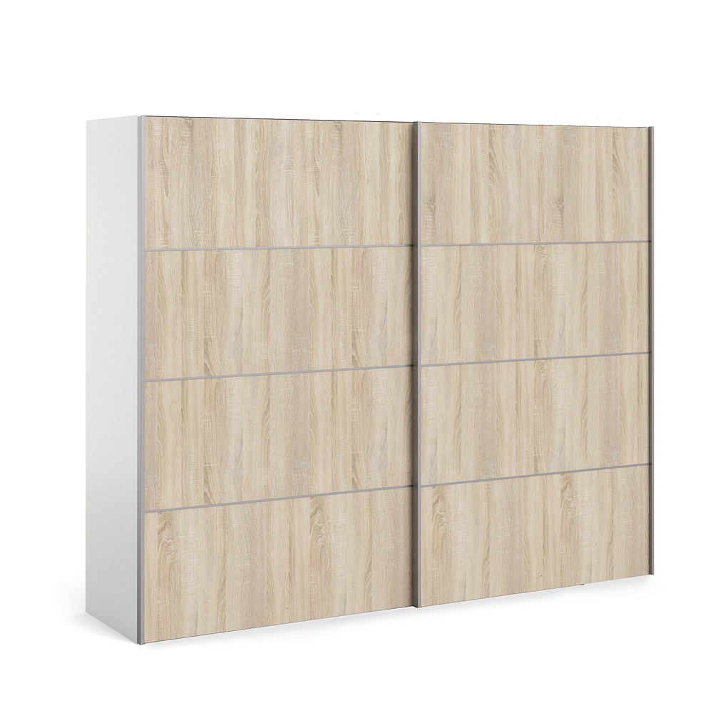 Veto Schuifdeurkast 2 deuren breed 243 cm wit, eiken decor.