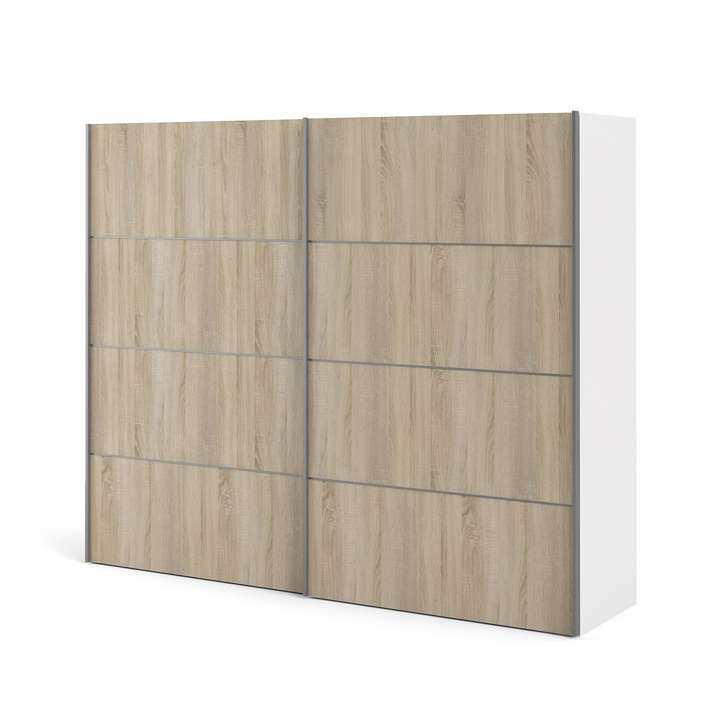 Schuifdeurkast 2 deuren breed 243 cm wit, eiken decor. Je ontvangt meubels van een goede kwaliteit met een aangenaam comfort, gemaakt in een stijlvol en mooi design. Onze meubels zijn zeer aantrekkelijk geprijsd. Creëer uw eigen persoonlijke stijl met een nieuw meubel. Combineer met kleinmeubels of een paar mooie woonaccessoires. Hier verkrijg je de nieuwe woningtrends, zoals je ze in tijdschriften en magazines ziet. Bij ons vindt u unieke, praktische en comfortabele meubels met elk zijn eigen, mooi en apart design.
