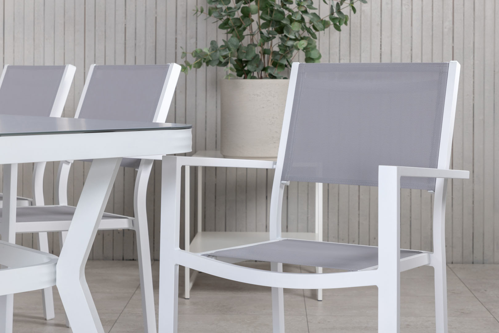 Virya tuinmeubelset tafel 100x200cm en 6 stoel Copacabana zwart, grijs, wit.