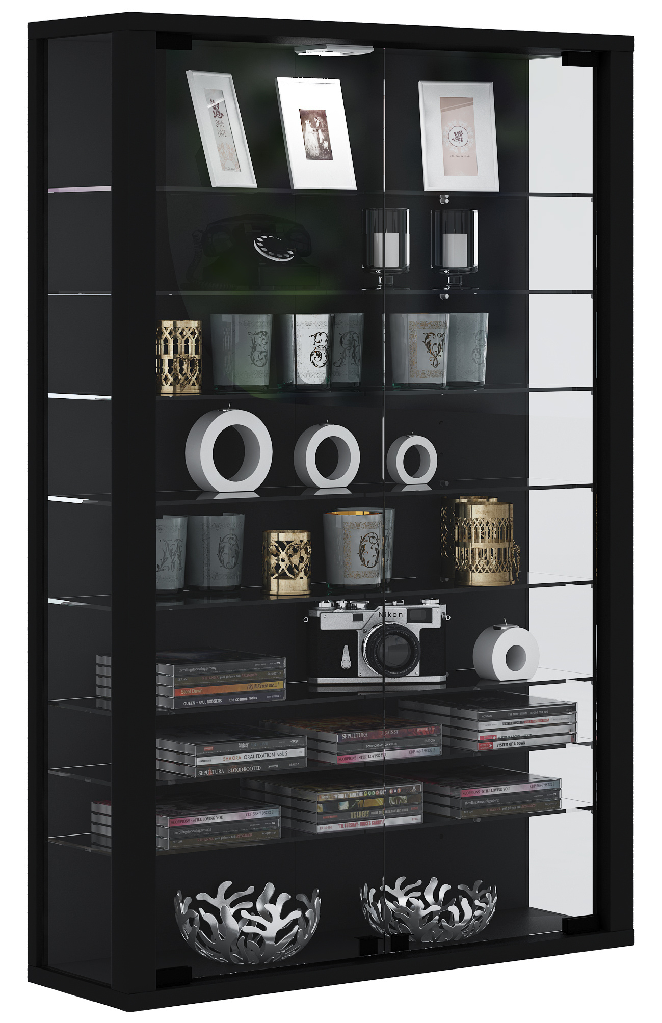 ebuy24 Vitrosa Mini vitrinekast Wandmodel met 2 glazen deuren en 8 glazen planken.zwart.