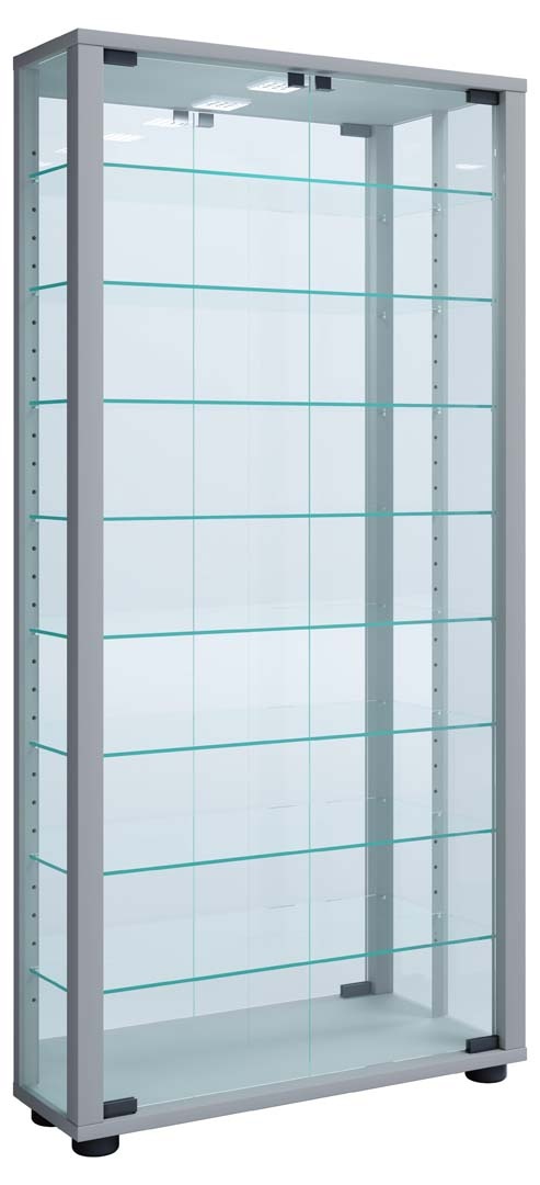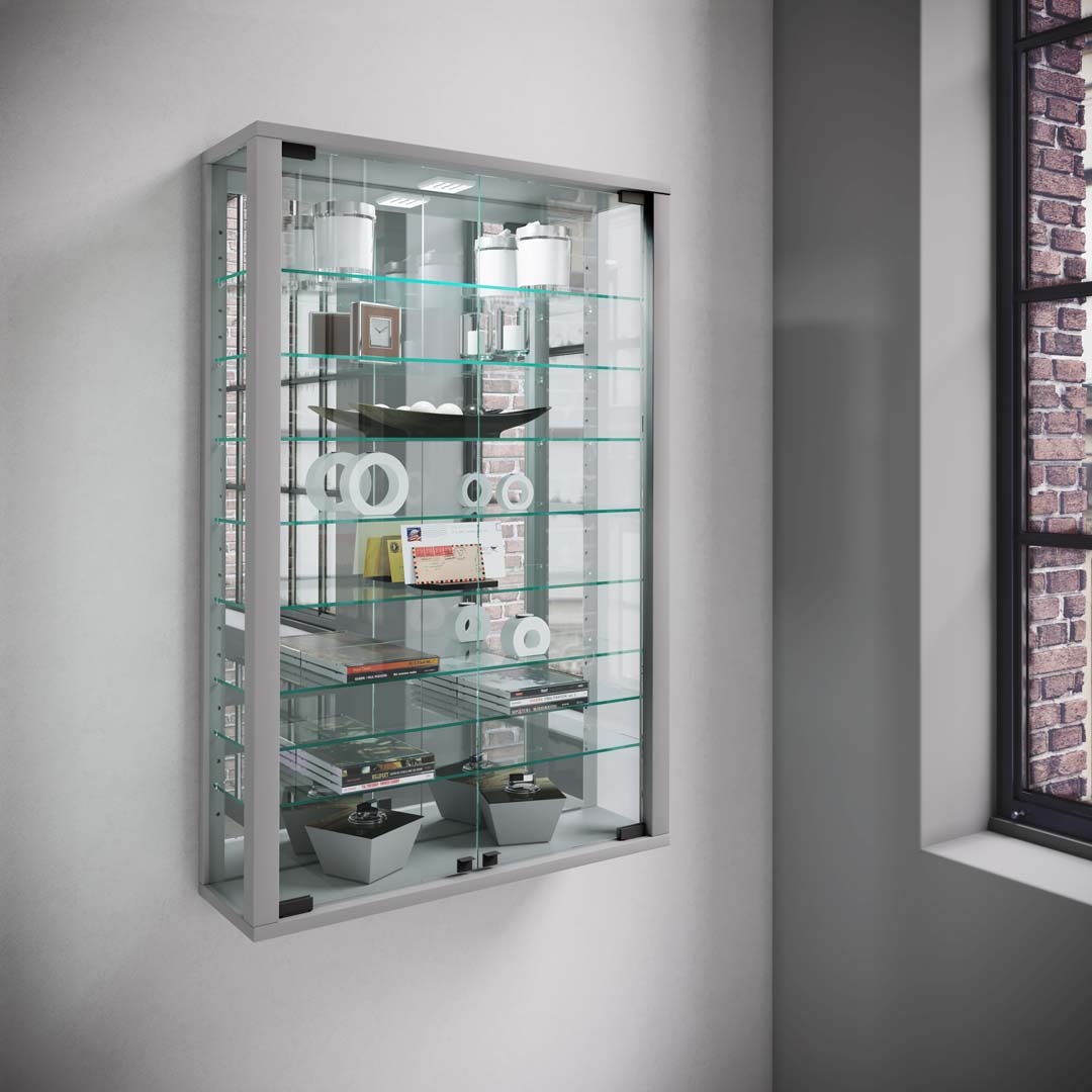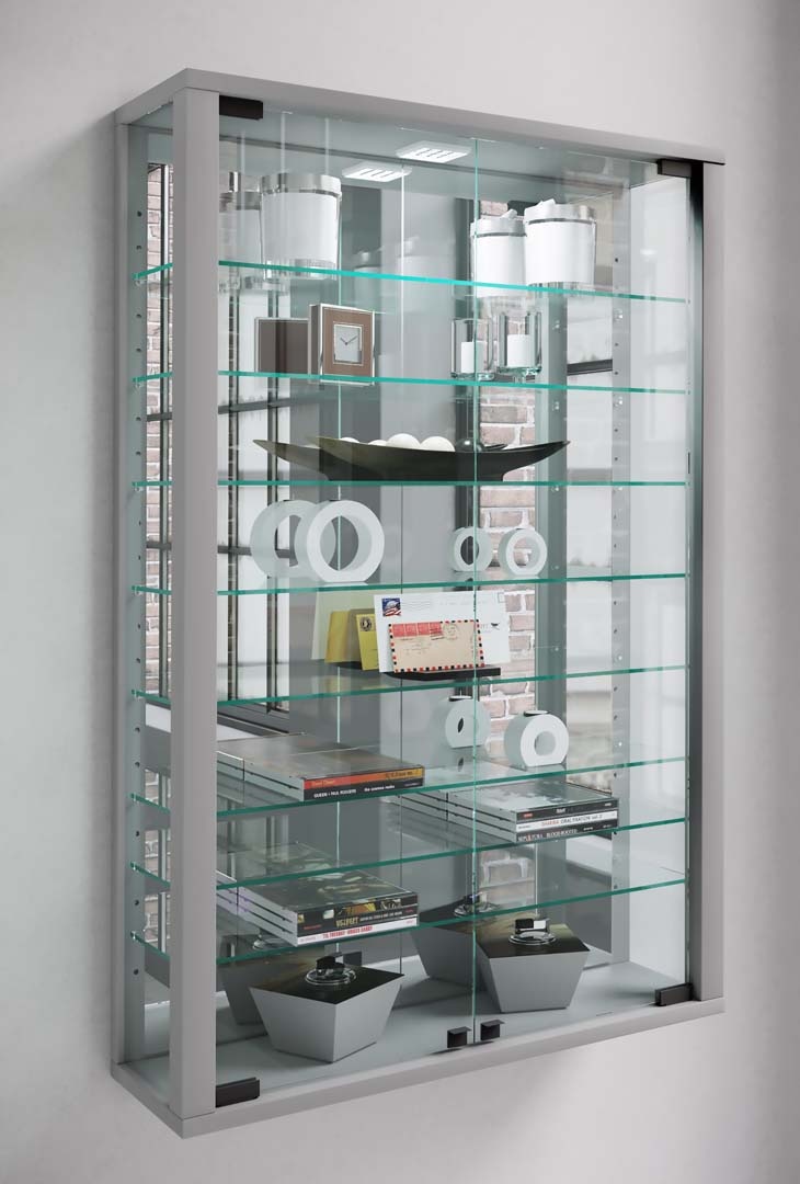 ebuy24 VitrosaMini vitrinekast wandmontage met spiegel 2 glazen deuren Incl. LED-verlichting zilverkleurig.