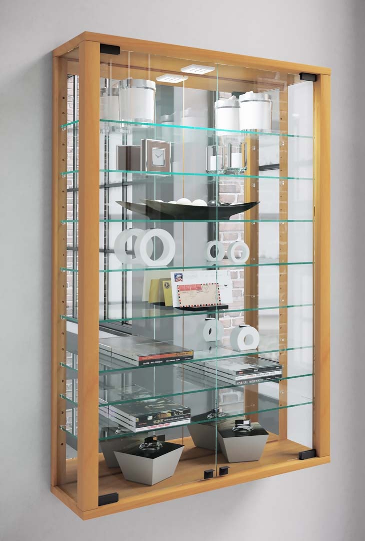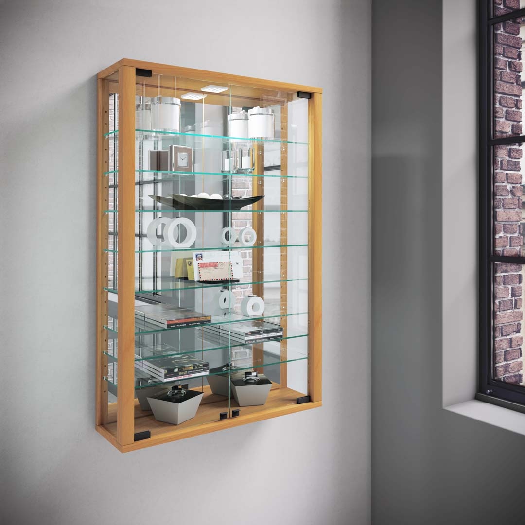 ebuy24 VitrosaMini vitrinekast wandmontage met spiegel 2 glazen deuren beuken decor.