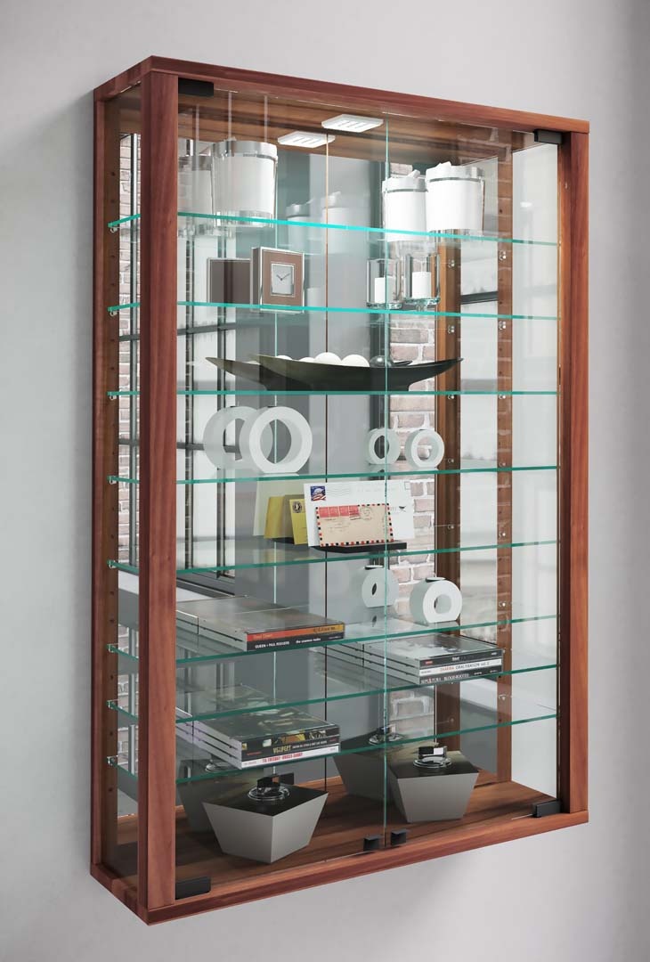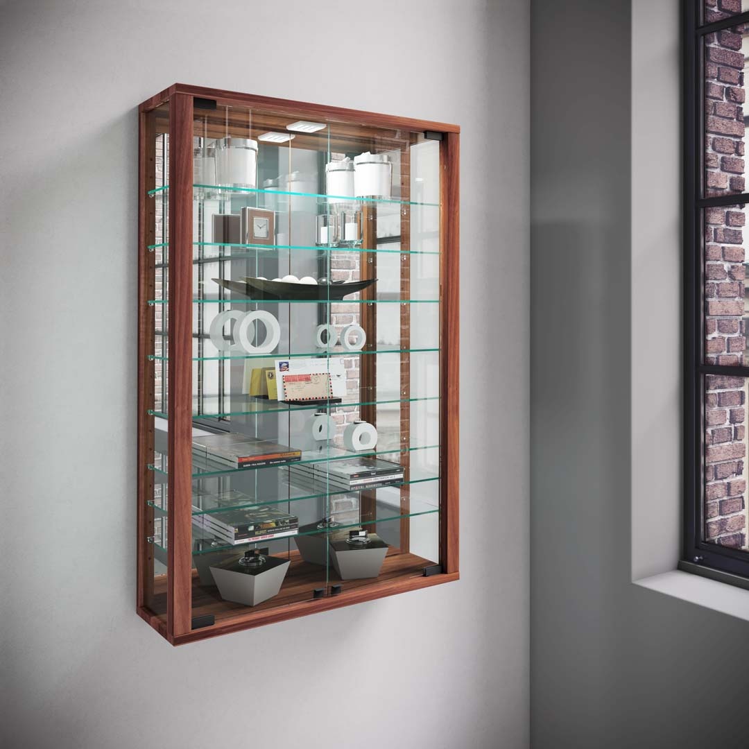 ebuy24 VitrosaMini vitrinekast wandmontage met spiegel 2 glazen deuren nootboom decor.