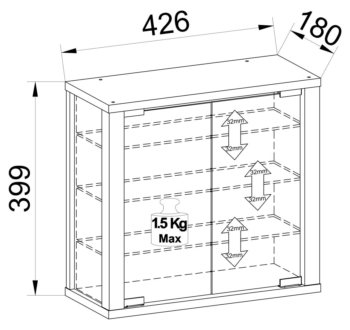 Productafmetingen: Breedte: 43 cm Diepte: 18 cm Hoogte: 40 cm