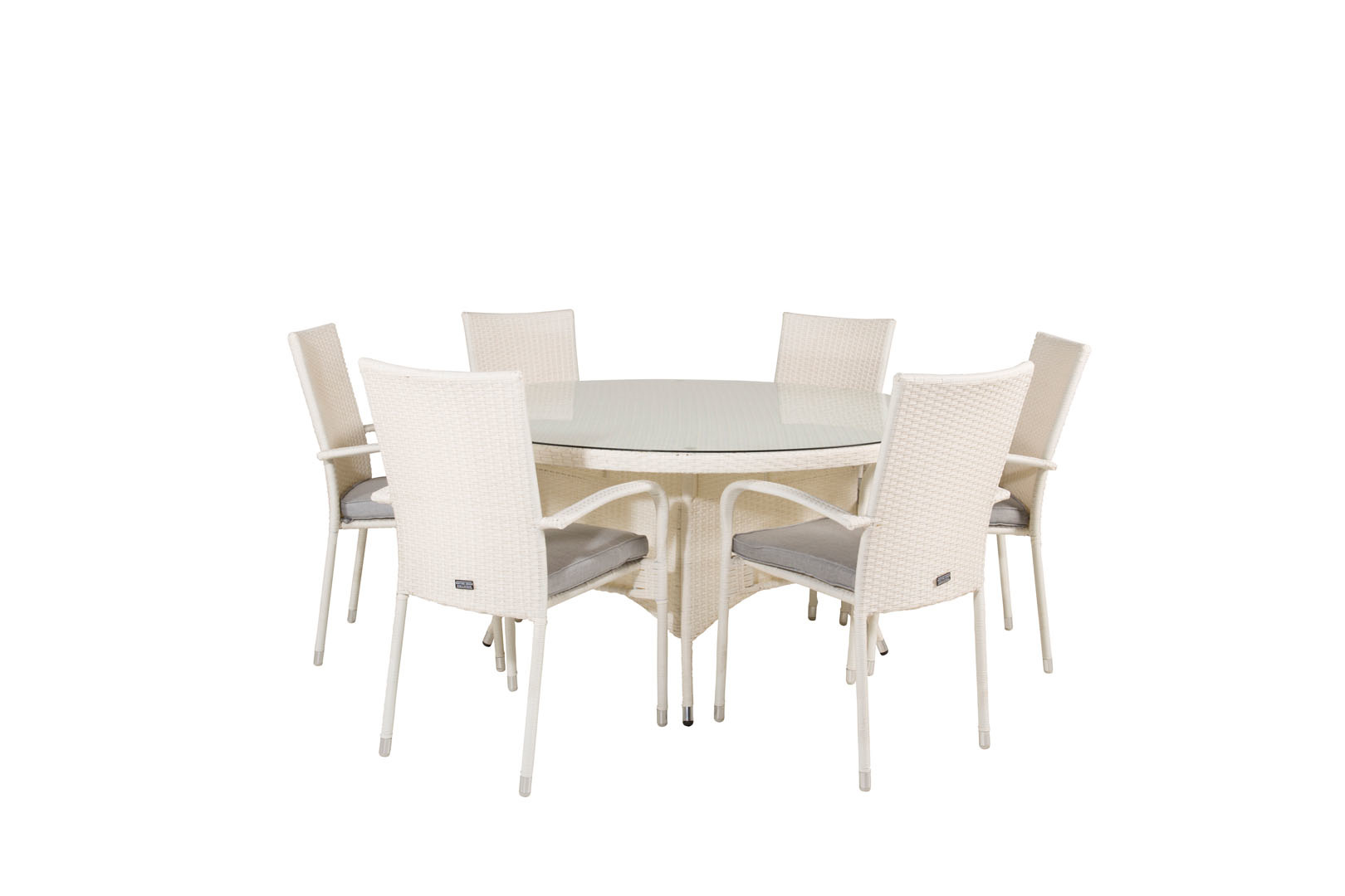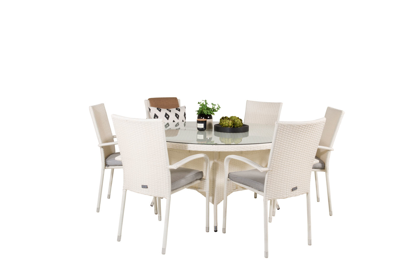 Volta tuinmeubelset tafel Ø150cm en 6 stoel Anna wit.