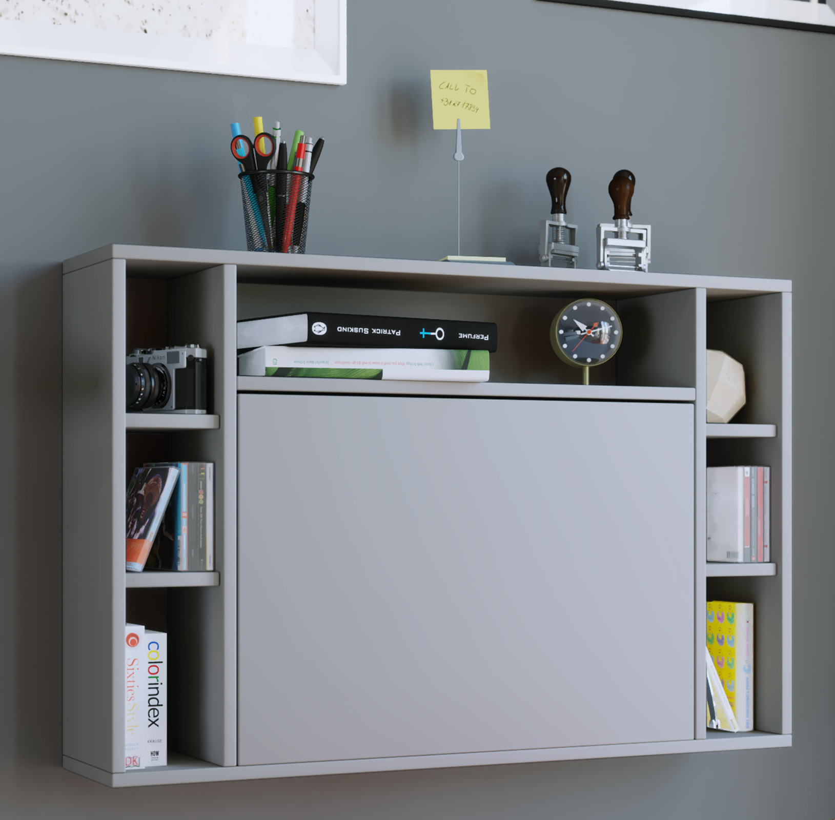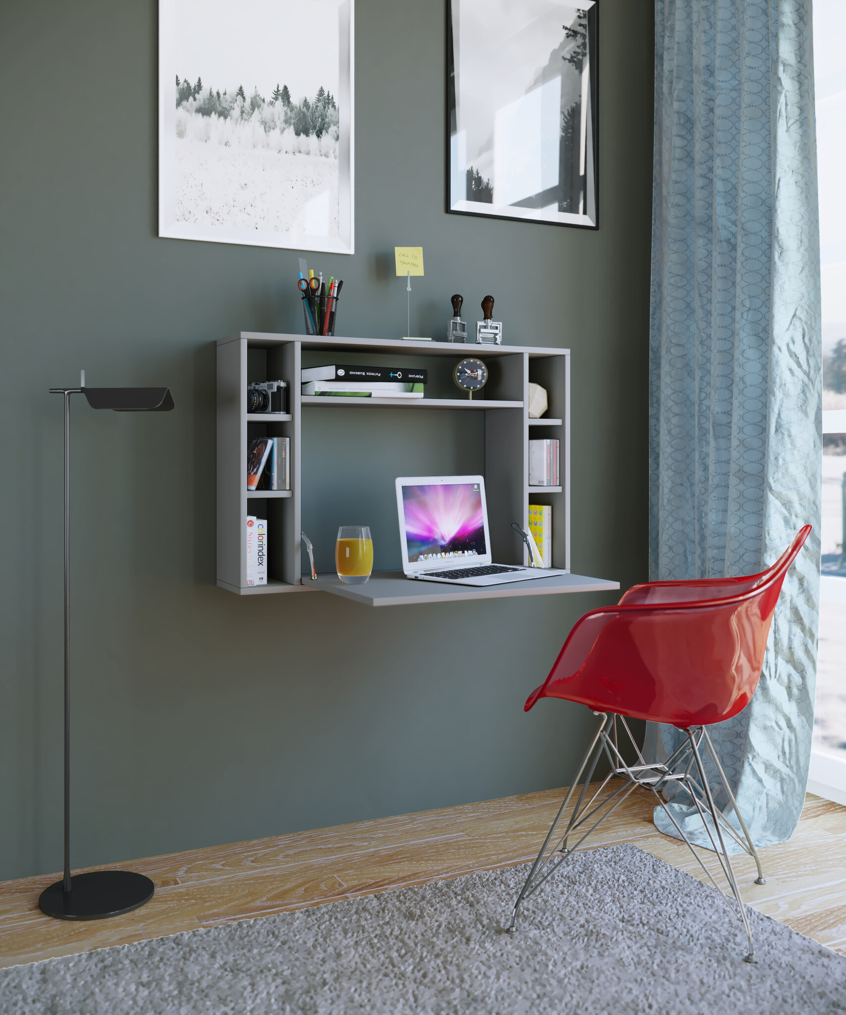 ebuy24 Wandila bureau , Laptopbureau wand en 7 vakkenGrijs.