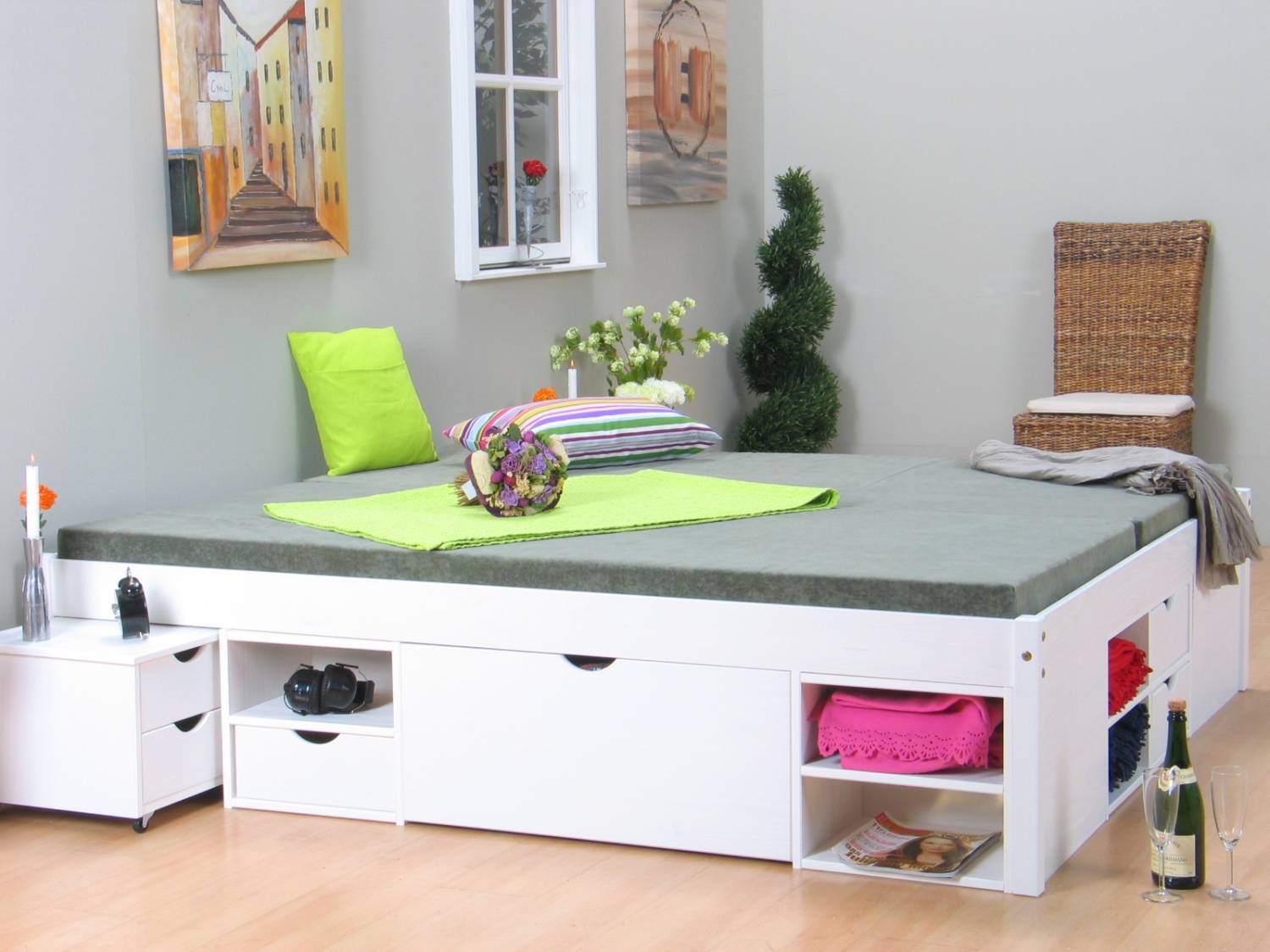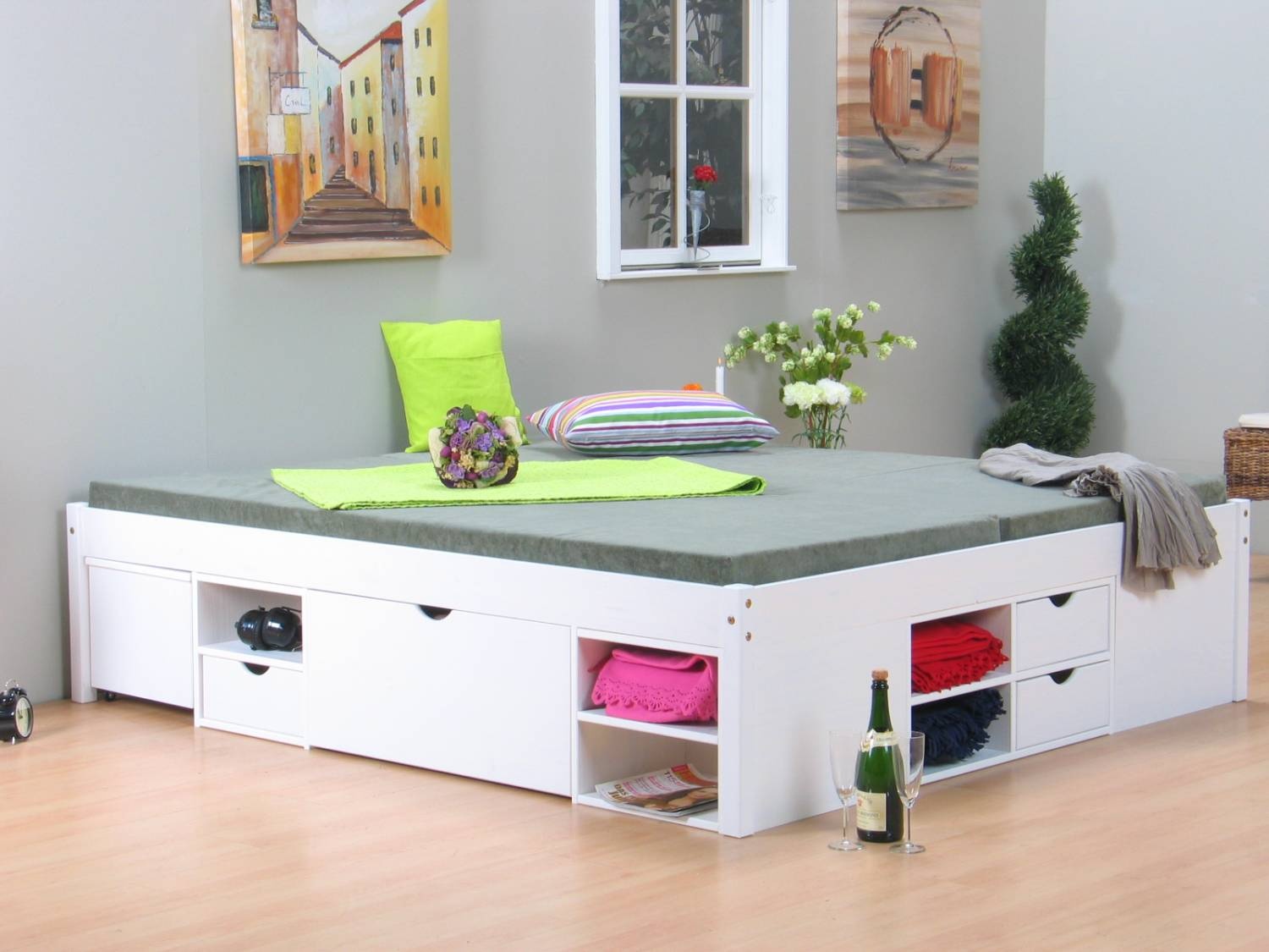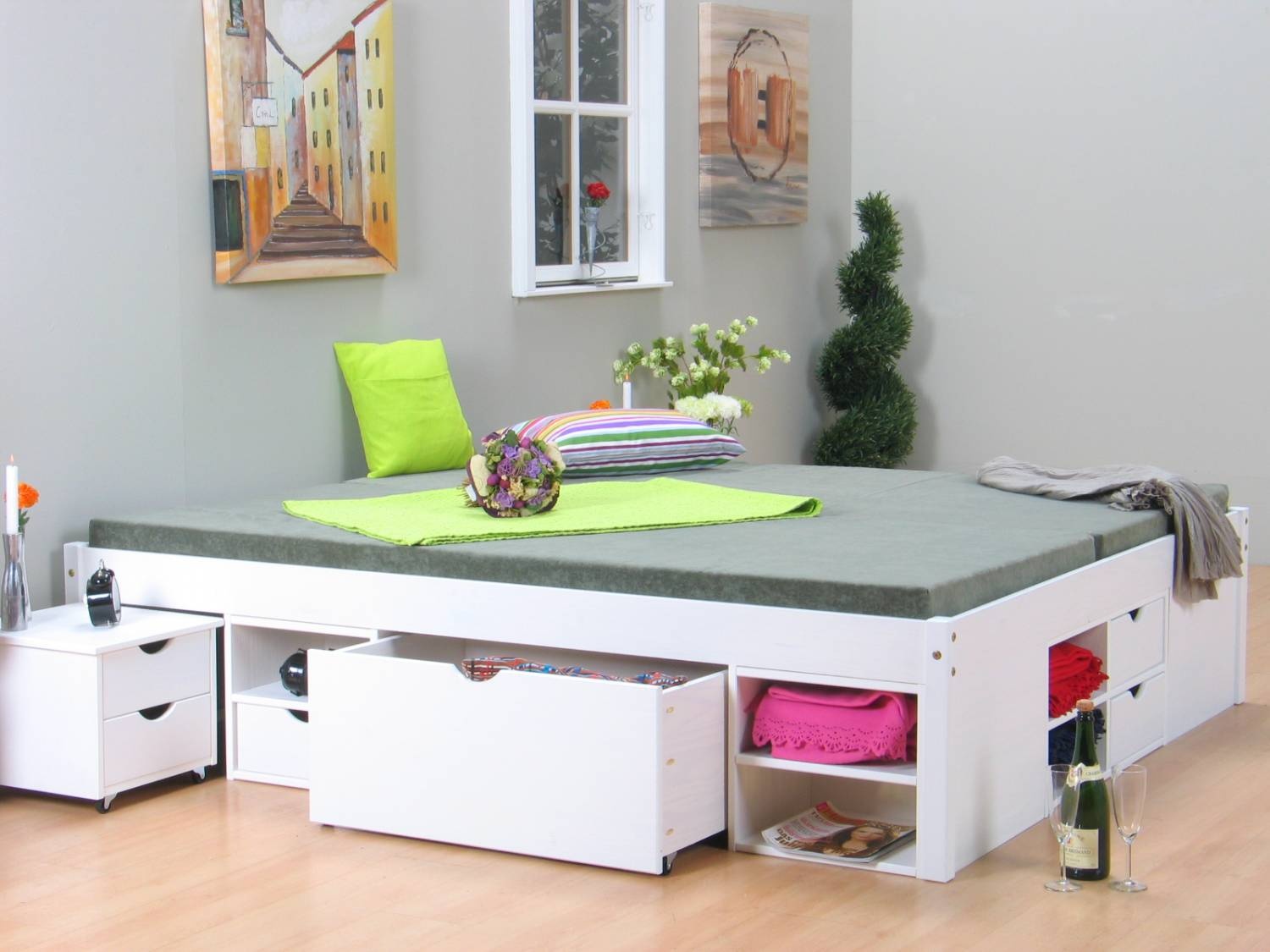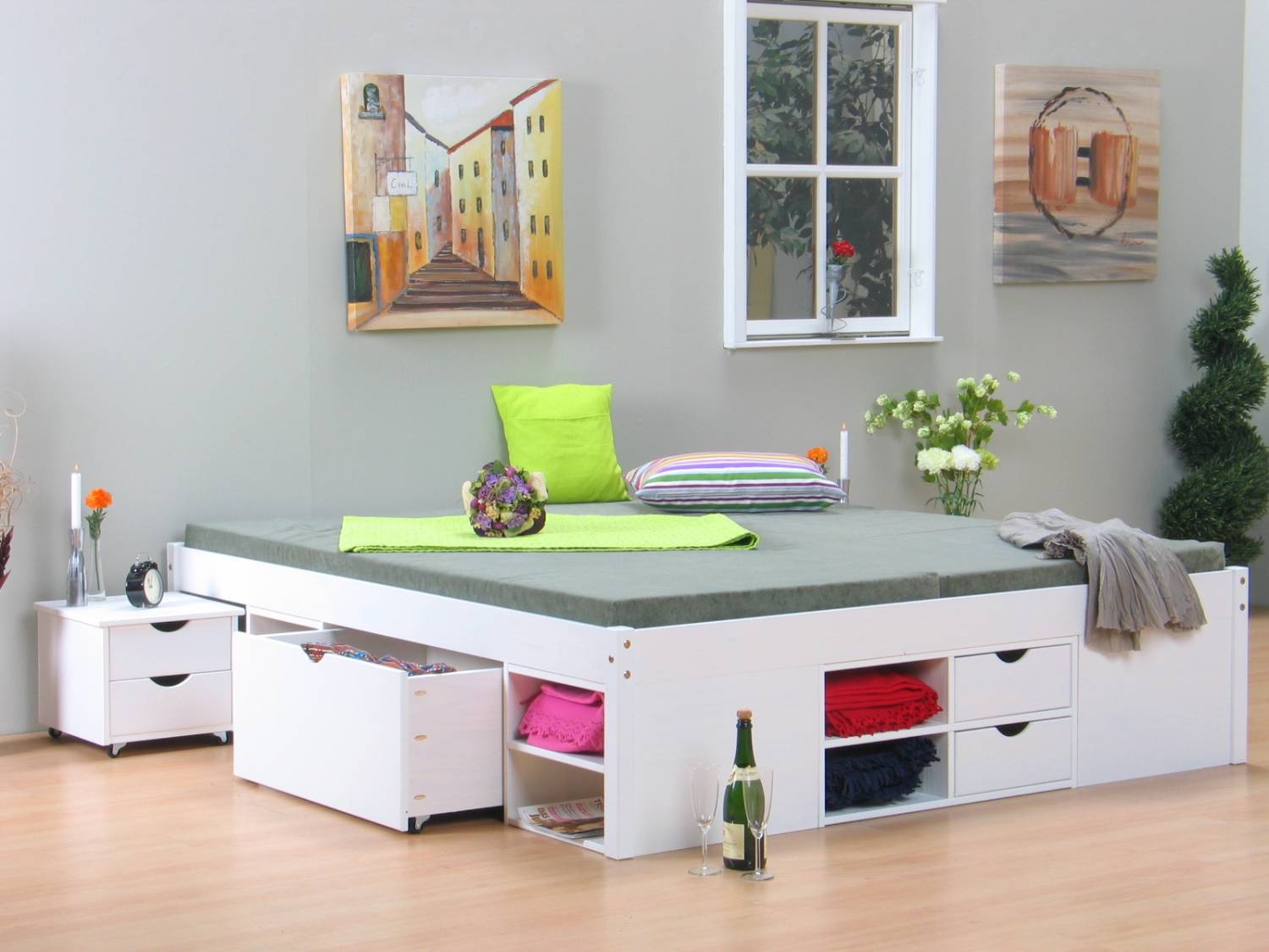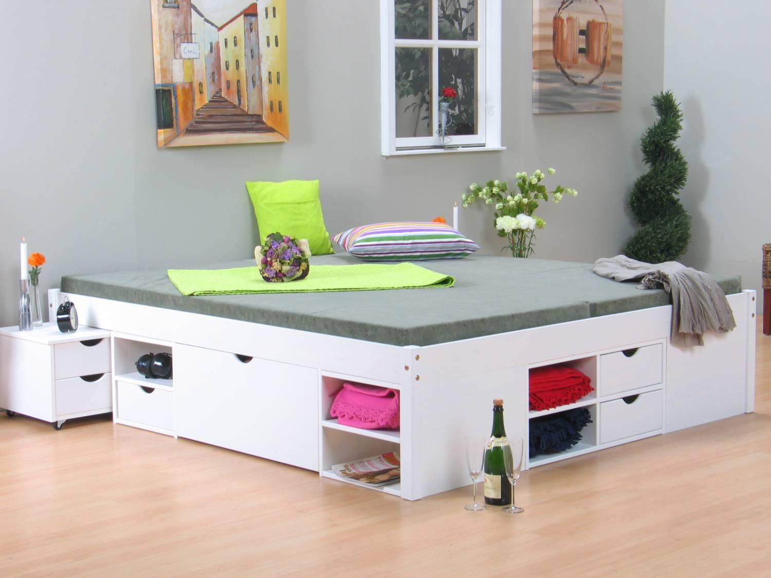 Wit tweepersoonsbed met royale bergruimte 140 x 200