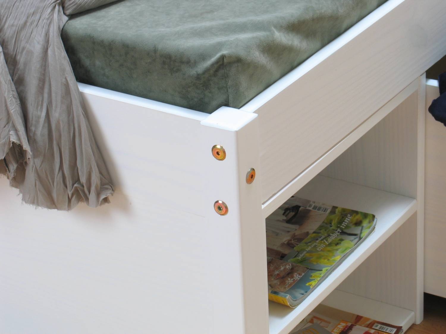 - Massief grenenhout, wit gelakt.