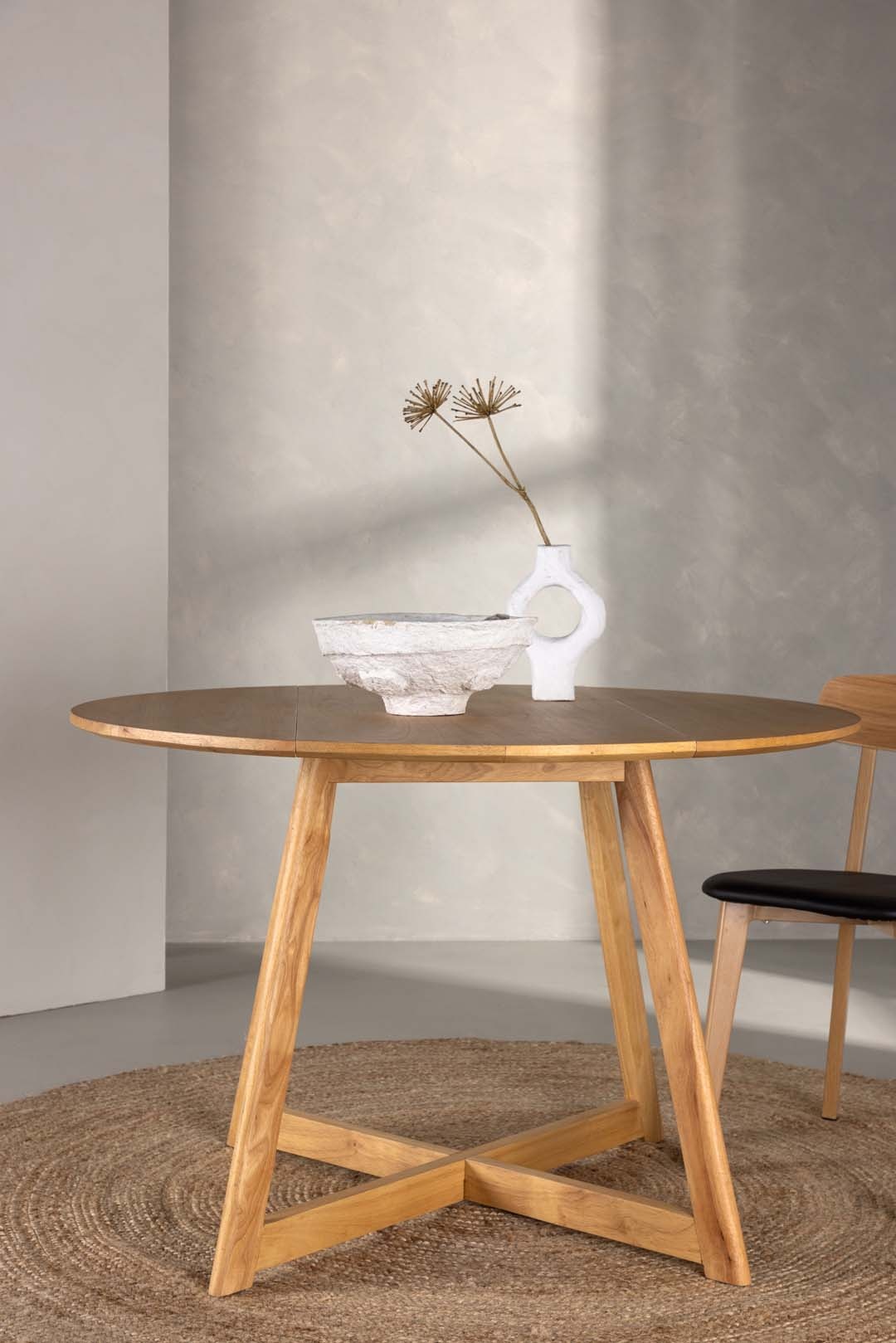 ebuy24 Yadikon eetkamertafel Ø120cm , uittrekbaar met extra plaat eik decor.