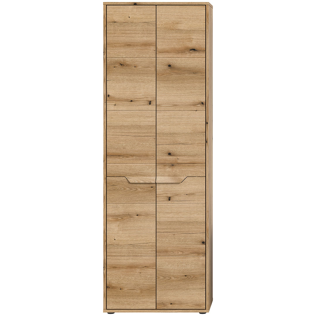 Zeno hoge kast badkamer 2 deuren eiken decor. Vaste planken: 1. Losse planken: 4. Zeno hoge kast voor de badkamer in eikendecor combineert praktische opbergruimte met een stijlvol design. De kast heeft twee deuren die toegang bieden tot een ruime opbergruimte met één vaste plank en vier verstelbare planken, waardoor er flexibiliteit ontstaat voor het opbergen van badkamerartikelen zoals handdoeken, cosmetica en schoonmaakproducten. De warme eikenhouten decorafwerking voegt een natuurlijke en moderne toets toe aan de badkamer, en het functionele ontwerp maakt het gemakkelijk om de badkamer georganiseerd en netjes te houden.