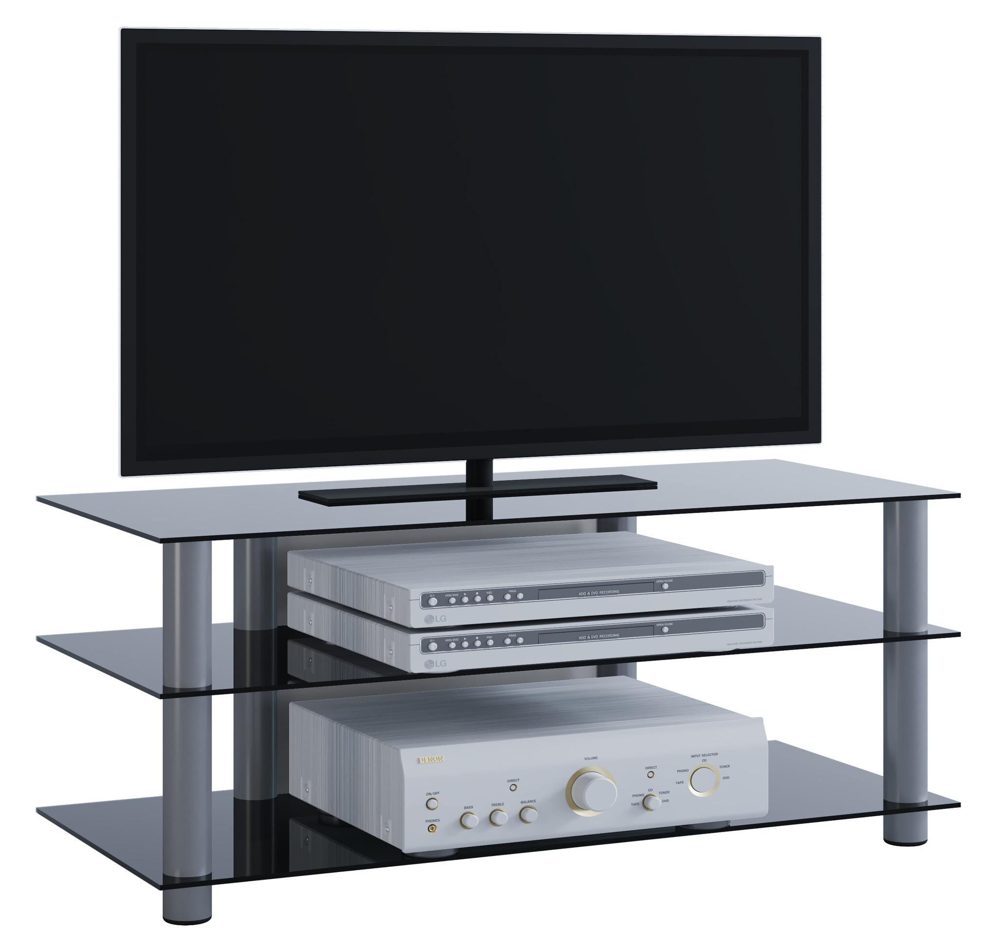 ebuy24 Zumbo TV-meubels met 3 glazen legplanken, Zilverkleurig, zwart glas.